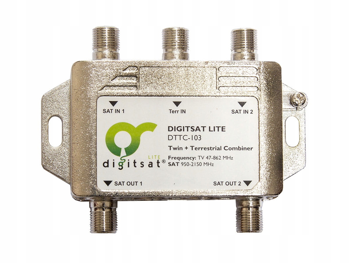 Комбайнер Digitsat DTTC-103 позволяет микшировать сигналы спутникового конвертера Twin с сигналом наземного телевидения DVB-T.