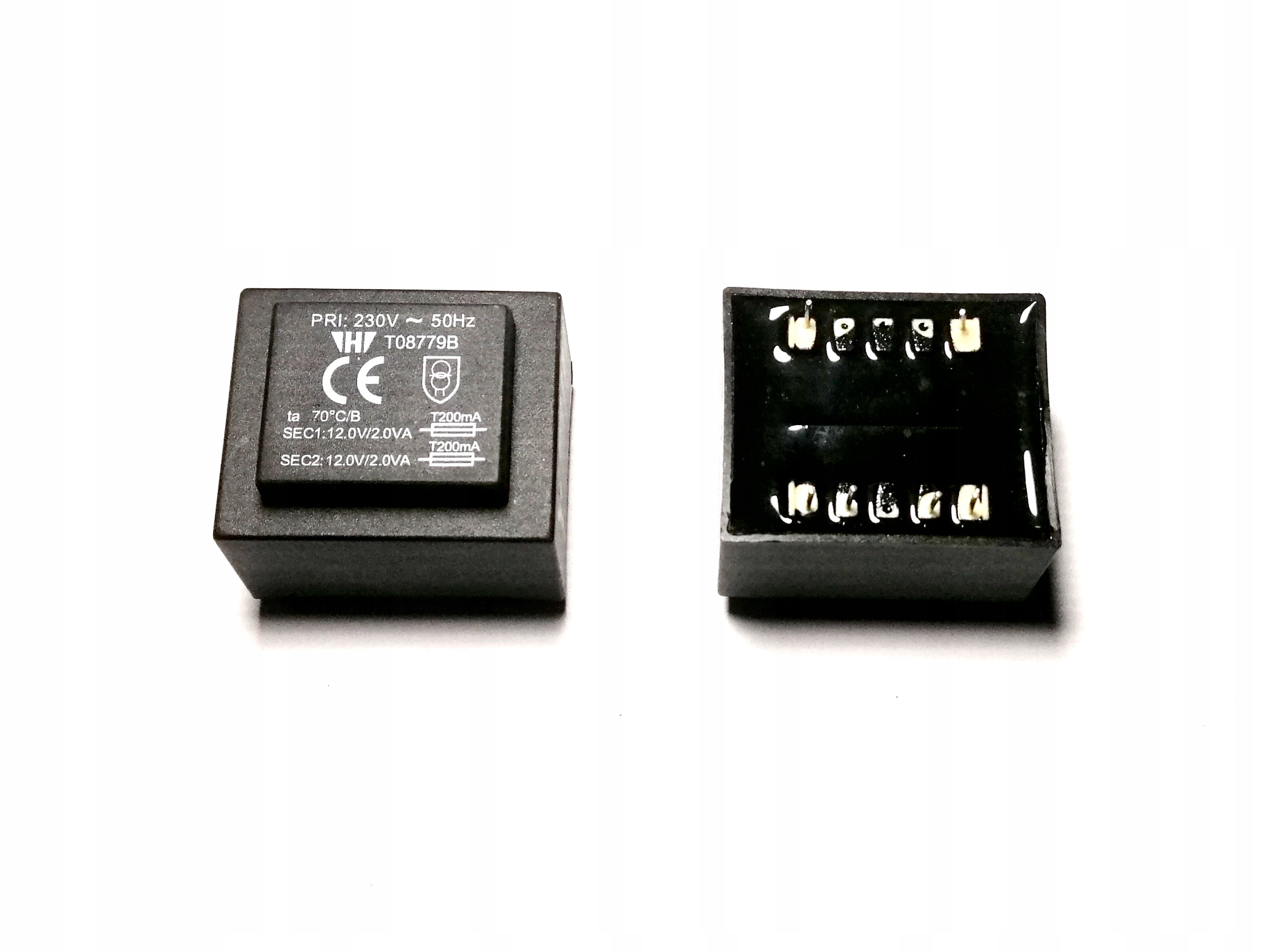 Подвійний трансформатор напруги - 230C AC на 2 x 12V AC, 2VA