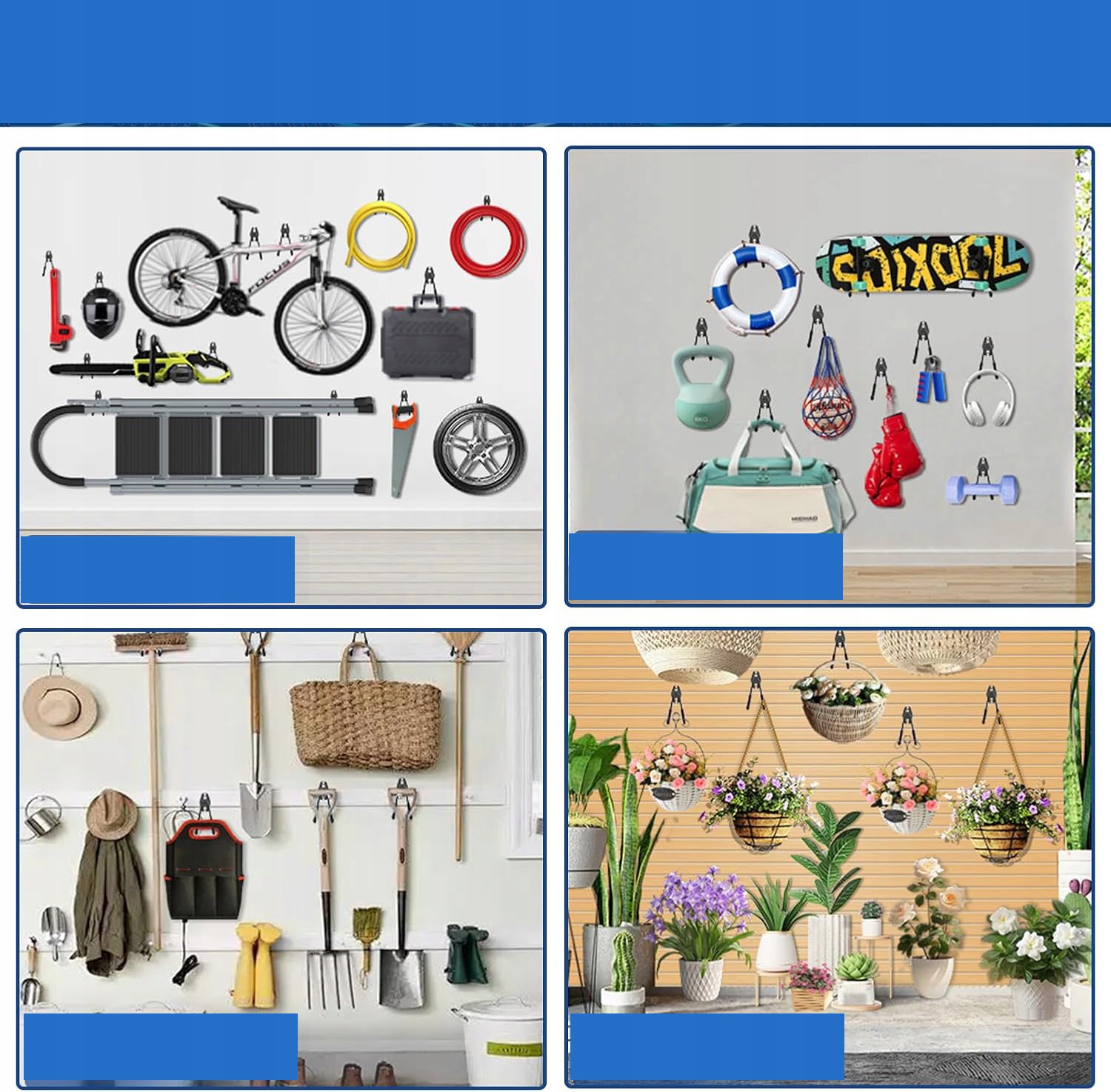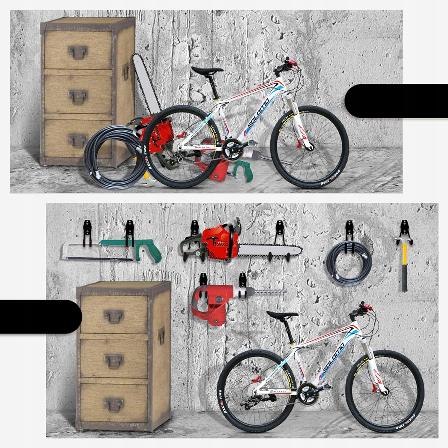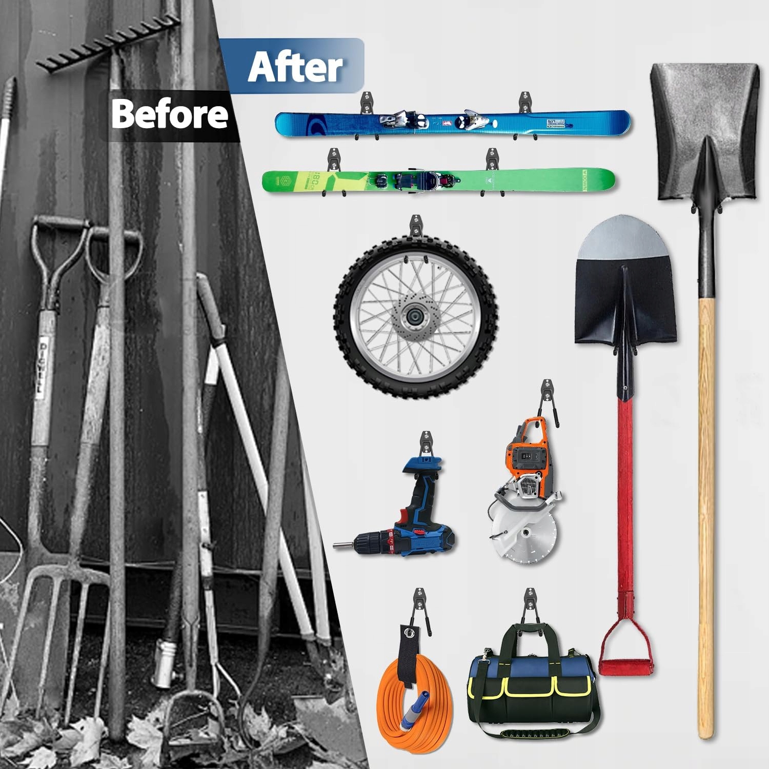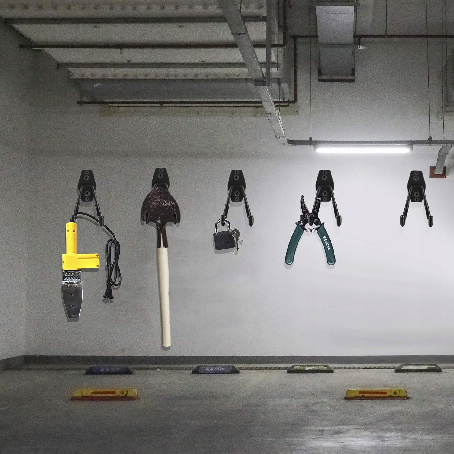 Двойные держатели на стенах гаража, крючки для хранения садовых инструментов