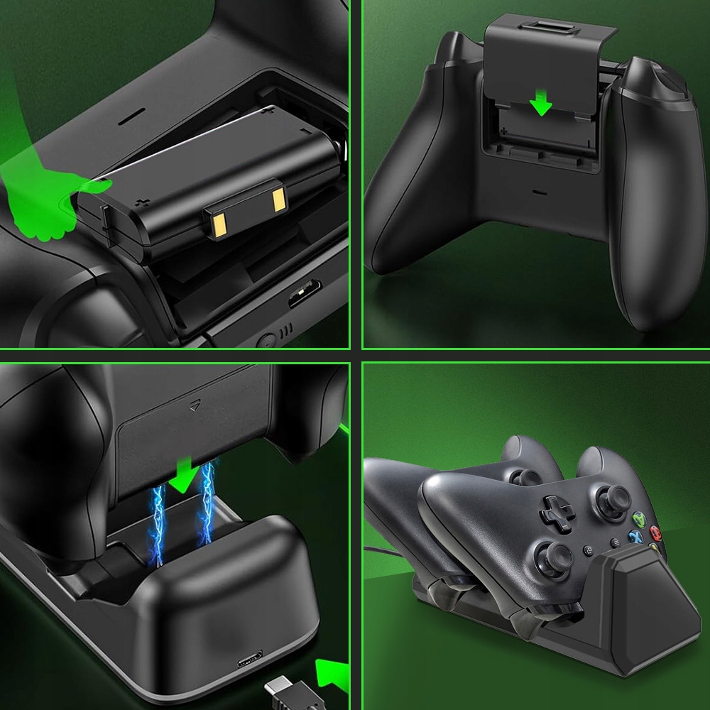 Набор включает в себя зарядную станцию с 2 батареями 800MWH , совместно с серией Xbox One и Xbox Controllers Series x/S . Благодаря этому вы избежите необходимости постоянно покупать отдельные батареи.