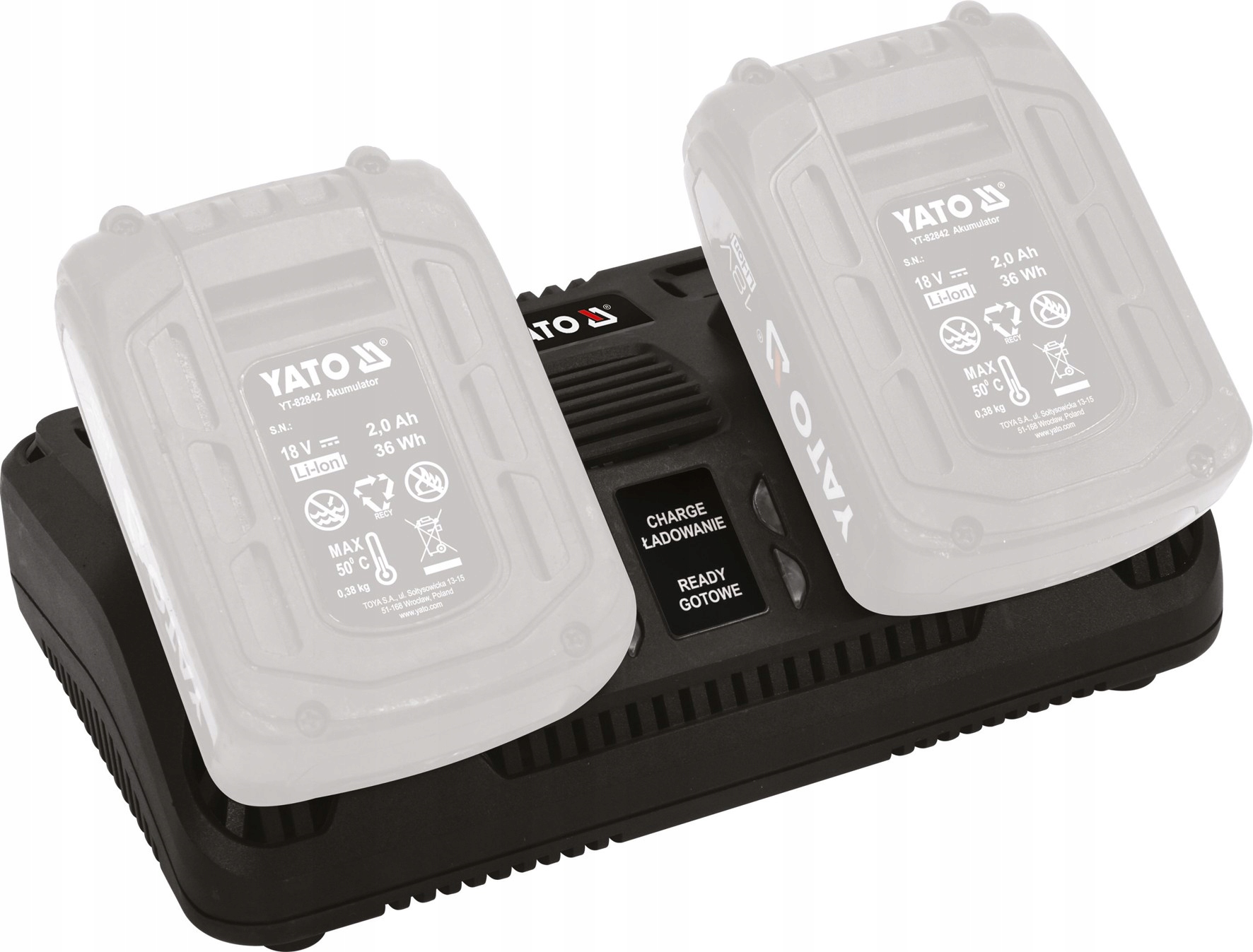 Профессиональное двойное зарядное устройство YATO, предназначенное для быстрой зарядки системных аккумуляторов 18 В: (2,0 Ач, 3,0 Ач, 4,0 Ач, 6,0 Ач).