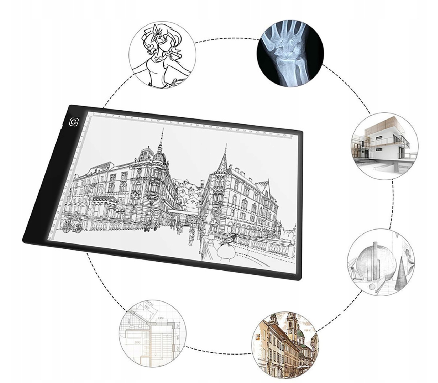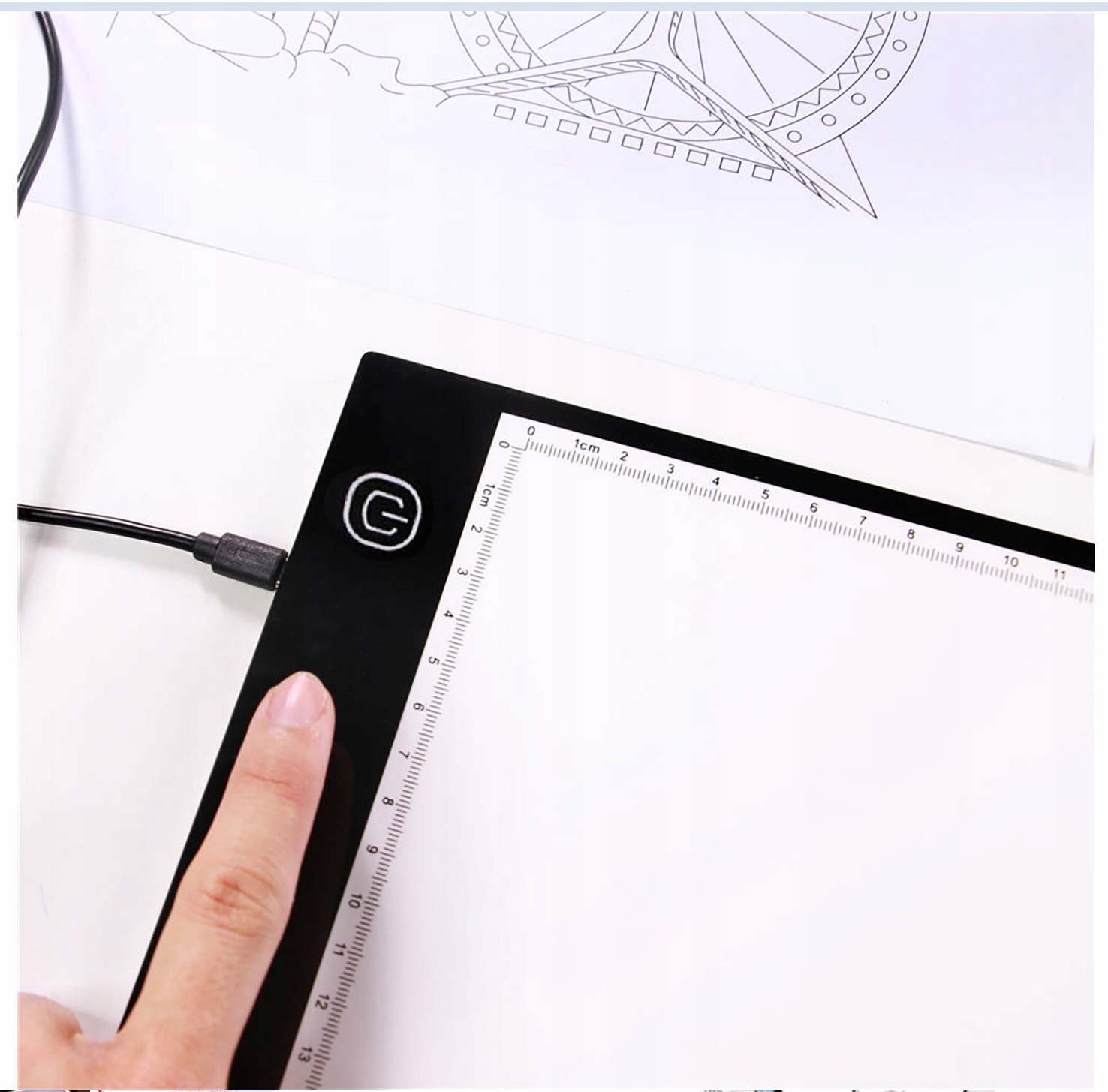 Профессиональная чертежная доска с подсветкой предназначена для выполнения эскизов и рисунков на кальке и бумаге. Благодаря очень хорошей Светодиодной подсветке интенсивностью 300-350 лм лист с изображением, которое мы хотим обвести, будет передержан на листе бумаги. Рекомендуется, чтобы лист бумаги, на который мы наносим рисунок, не превышал 200 г/м2. Вы можете приглушить свет в комнате, чтобы усилить эффект.