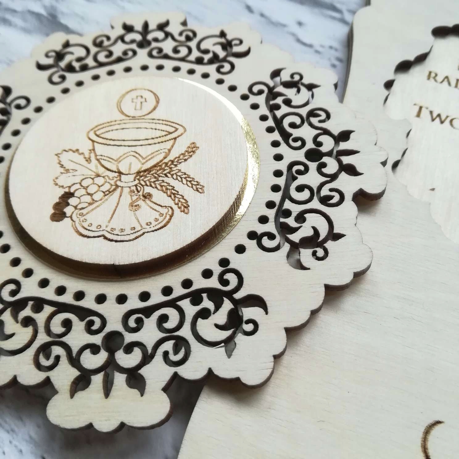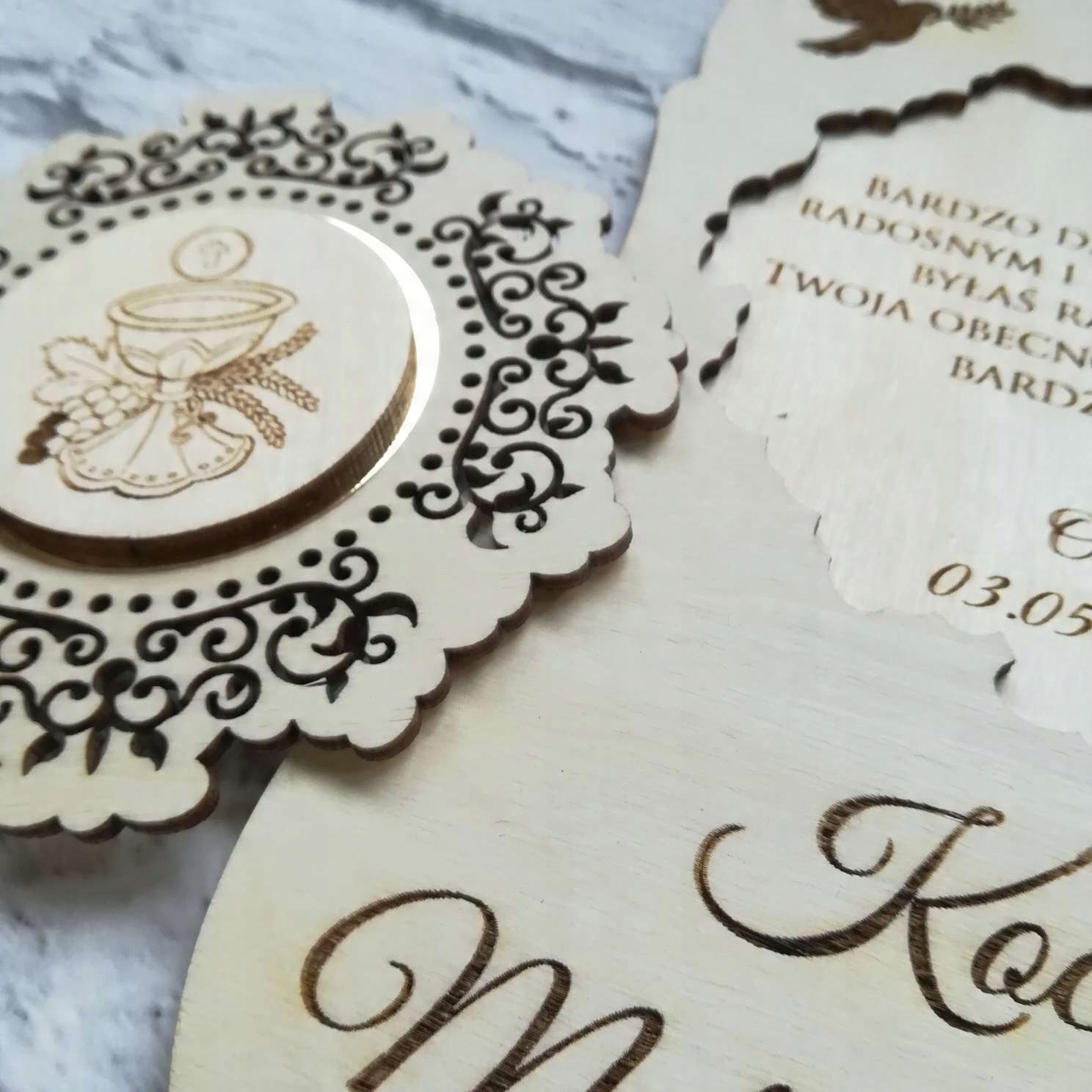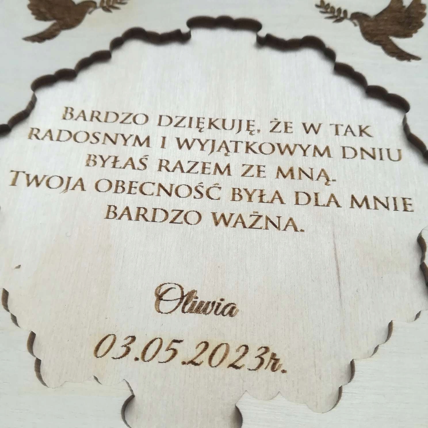 Подячна листівка з екологічно чистого дерева, перше причастя, гравер, персоналізація, подарунок
