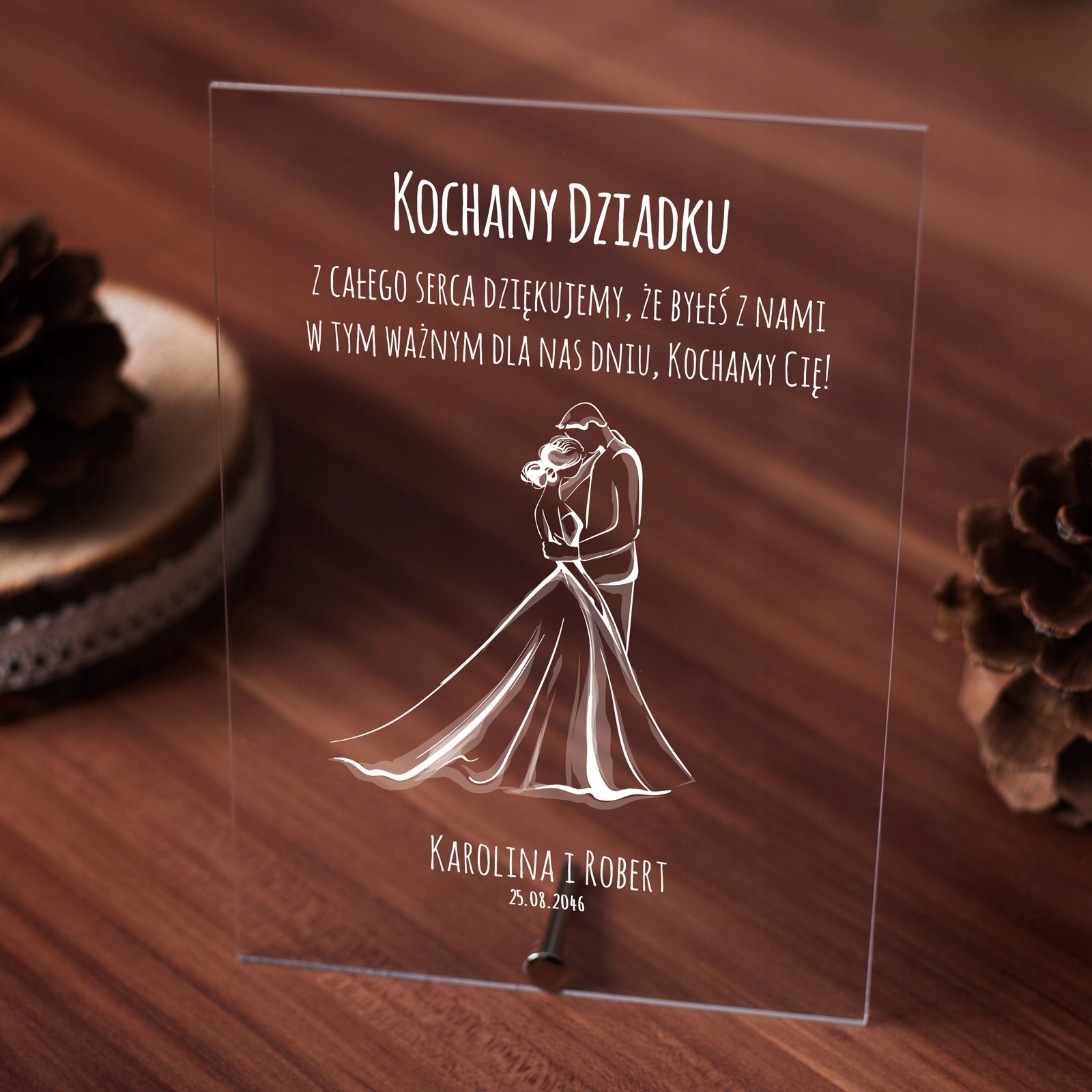 Статуэтка из акрила с гравировкой в качестве свадебного подарка в знак благодарности родителям, свидетелям, бабушкам и дедушкам, старостам, шаферам или по любому другому поводу + серебряная подставка.