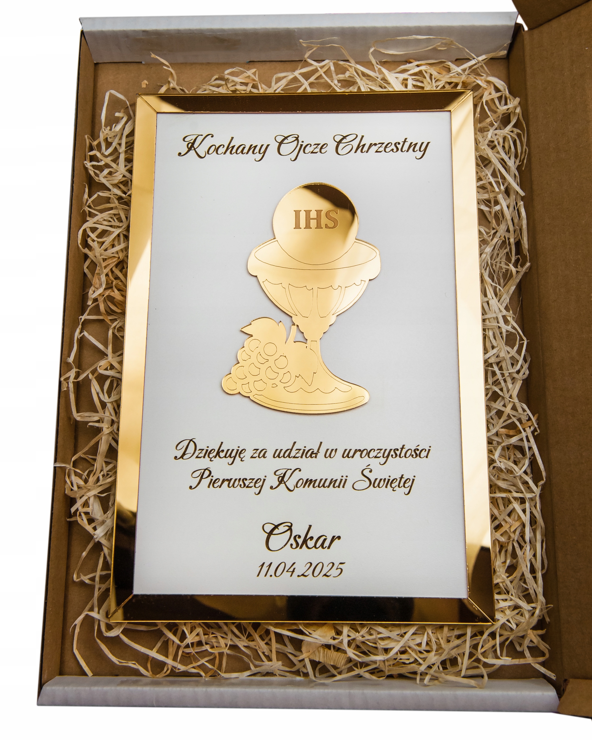 Спасибо по случаю Первого Причастия за крестных, бабушек и дедушек, золотую чашу в рамке + аксессуары