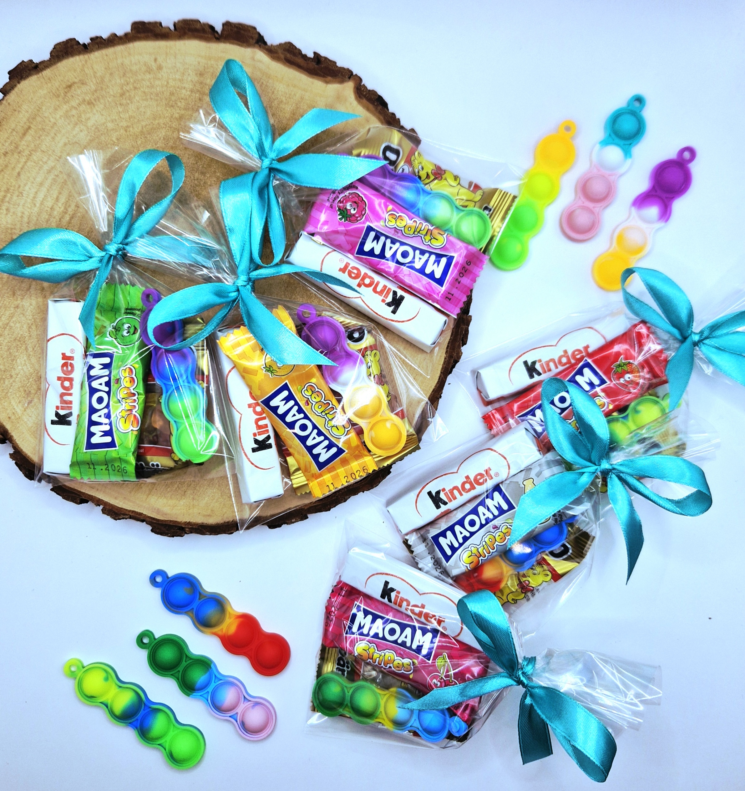 Все упаковано в блестящий целлофановый пакет размером 10х16 (см), перевязанный атласной бирюзой ленточка.