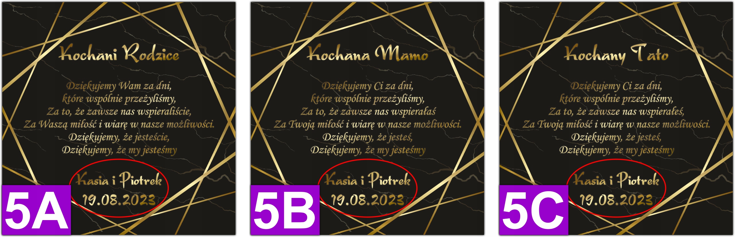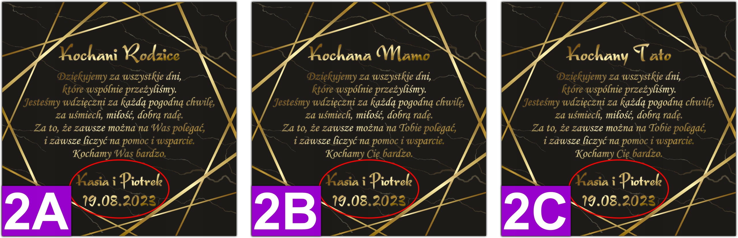 - на выбор 9 вариантов адресата пожеланий в шапке: Дорогие родители, Дорогая мама, Дорогой папа, Дорогие бабушка и дедушка, Дорогая бабушка, Дорогой дедушка, Дорогие крестные родители, Дорогая крестная мама, Дорогой крестный отец