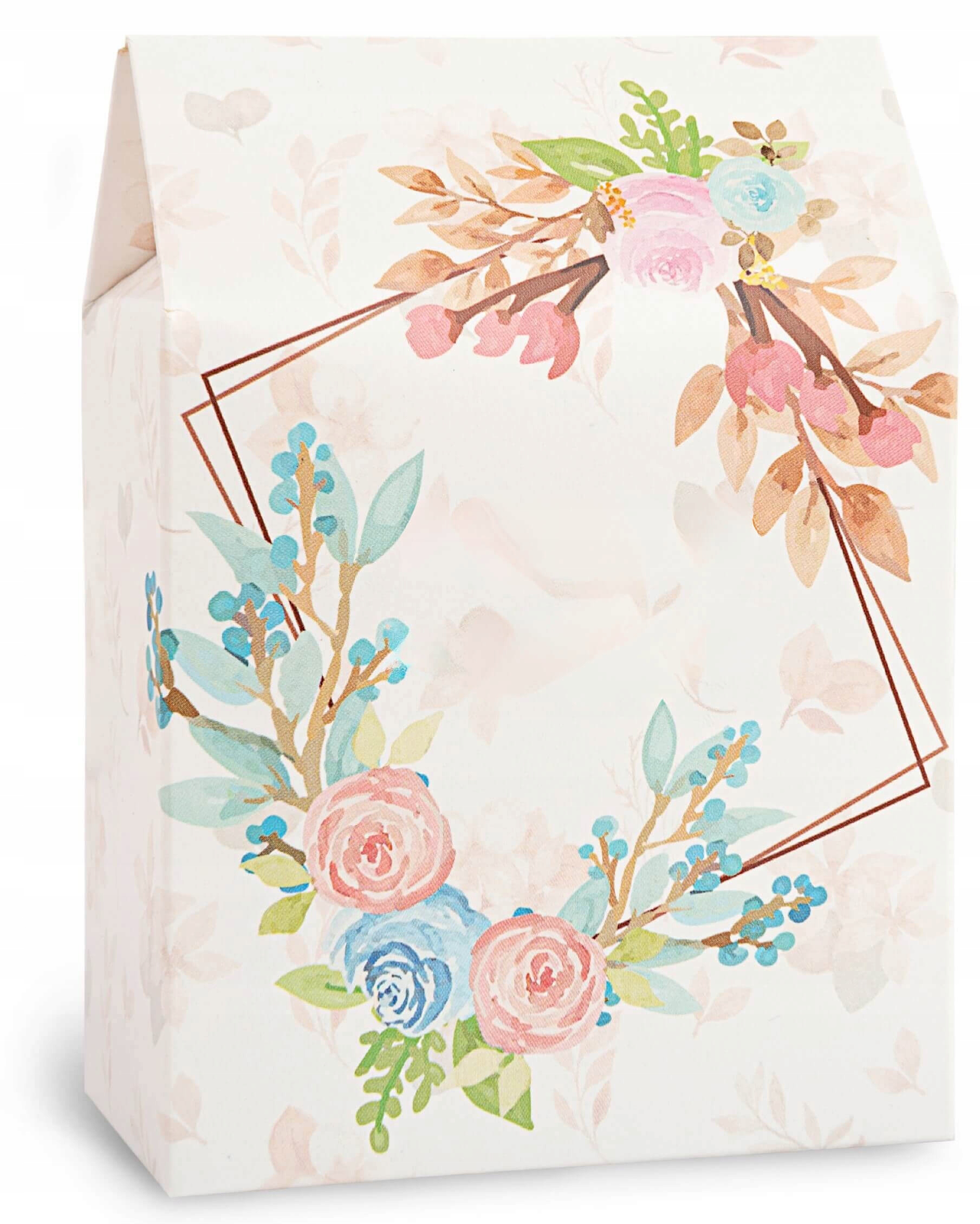 На заднем плане картон был напечатан с нежными пастельными цветами, передняя часть - темная рама, которая окружена пастельной графикой роз и других цветов в оттенках коричневого, синего и розового. На обороте мы также можем увидеть декоративное плетение цветов, дополняющих графический дизайн.