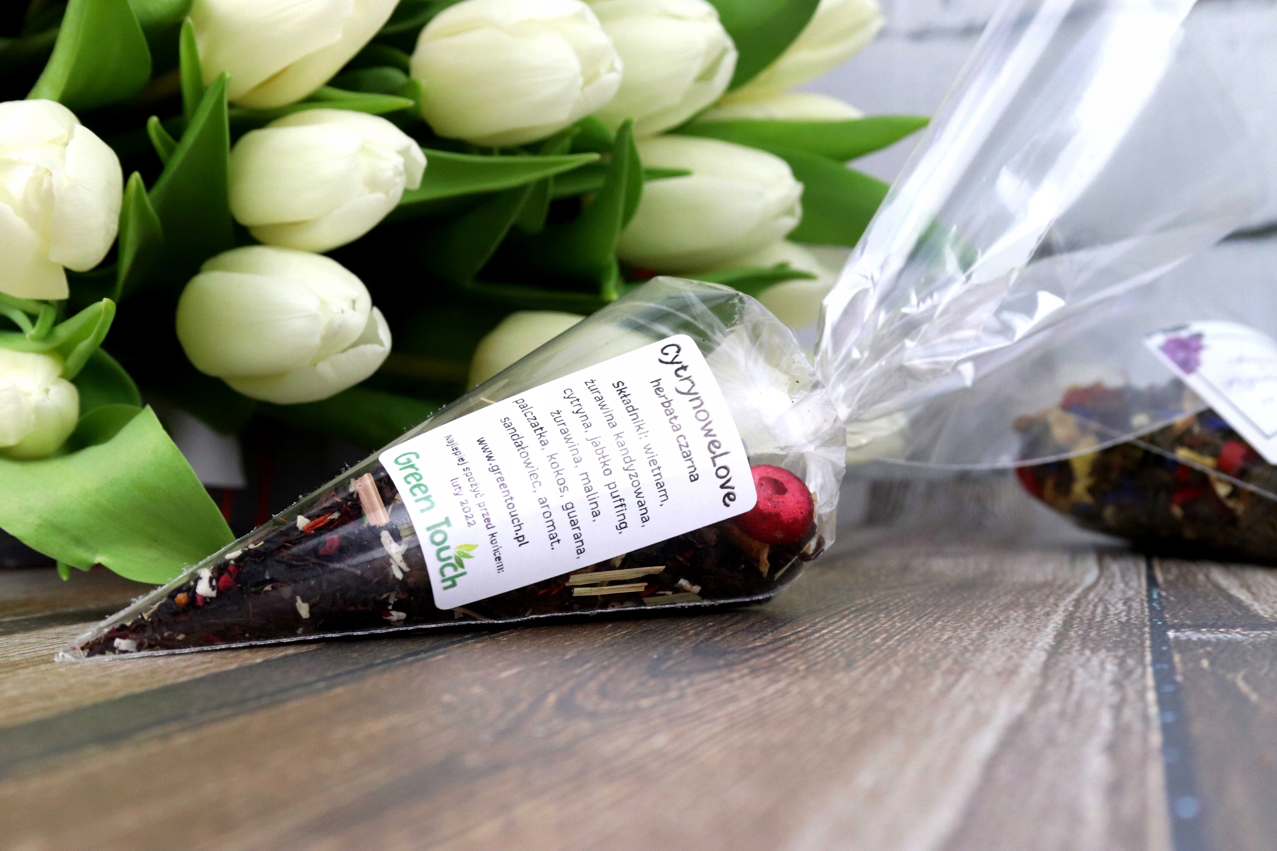 Целлофановый рожок, наполненный разноцветным листовым чаем на выбор. В комплект входит декоративная цветная наклейка в выбранной тематике.