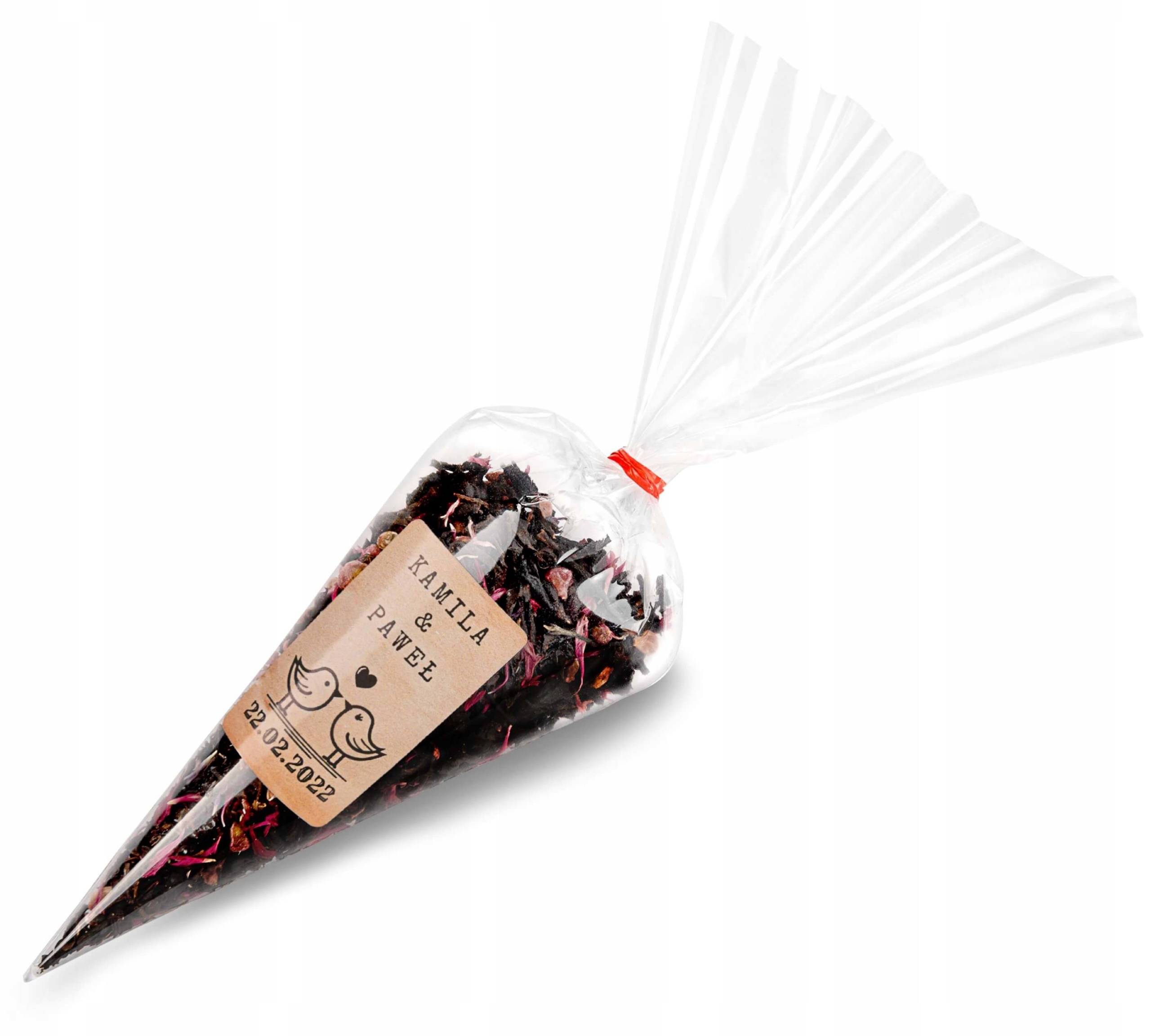 Целлофановые рожки с чаем в подарок, спасибо гостям