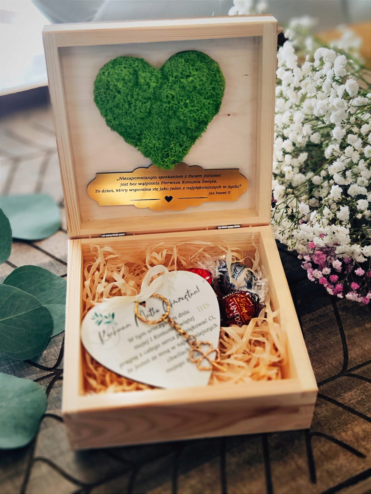 ✅ Сердце живого мха + золотая тарелка + сердце с кольцом с ключом
