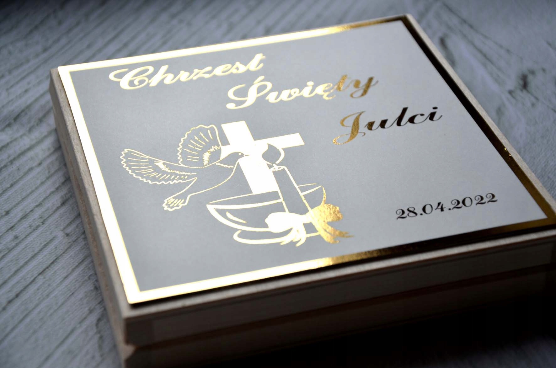 Деревянная шкатулка 15 х 15 см + персонализированная золотая печать, фото