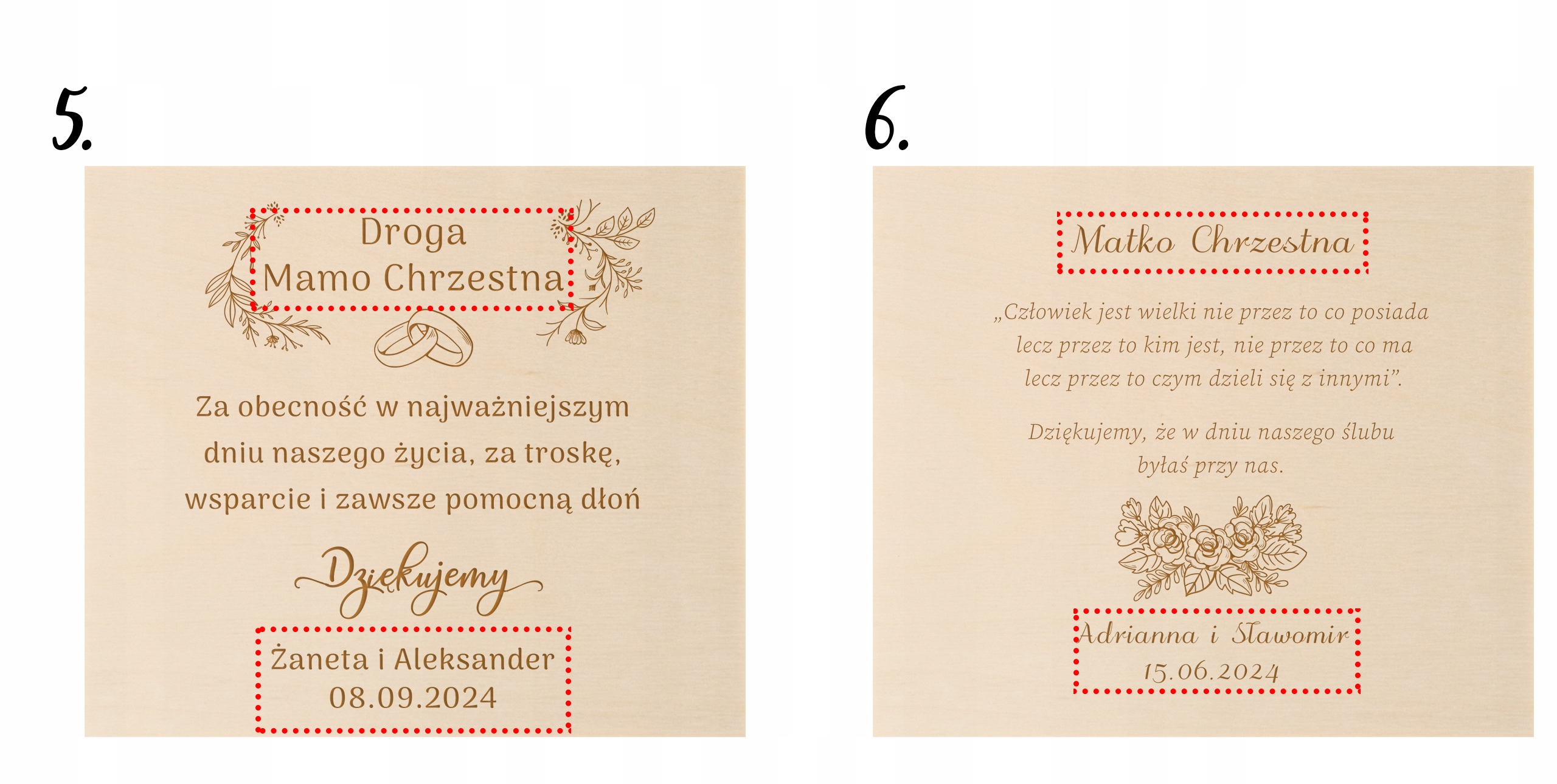 При покупке дополнительной услуги гравировки (доступна на других наших аукционах) мы можем заменить текст с выкройки на текст, предоставленный покупателем. Помните, что количество отправленных клиентом символов должно соответствовать количеству символов текста из шаблона.
