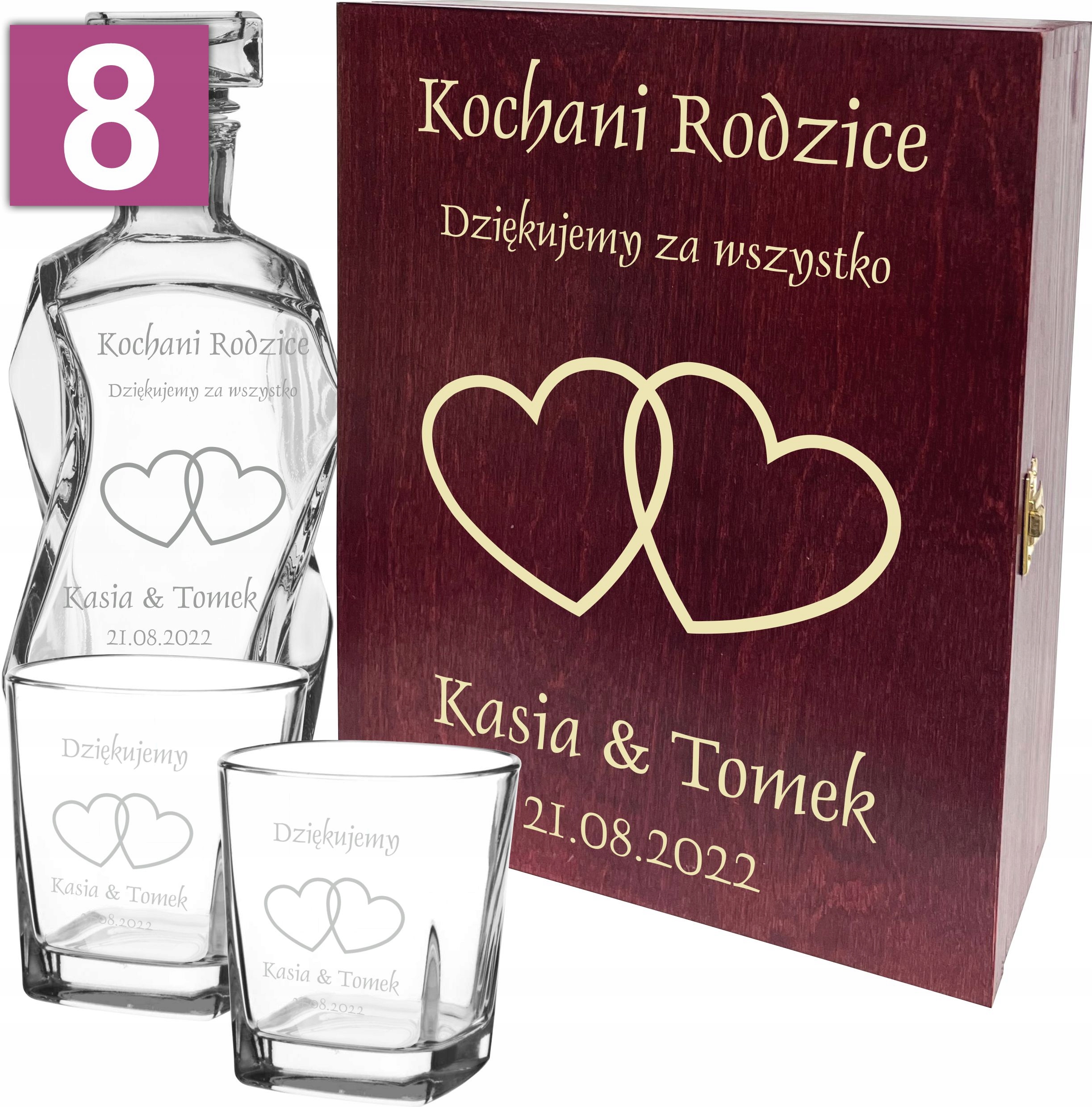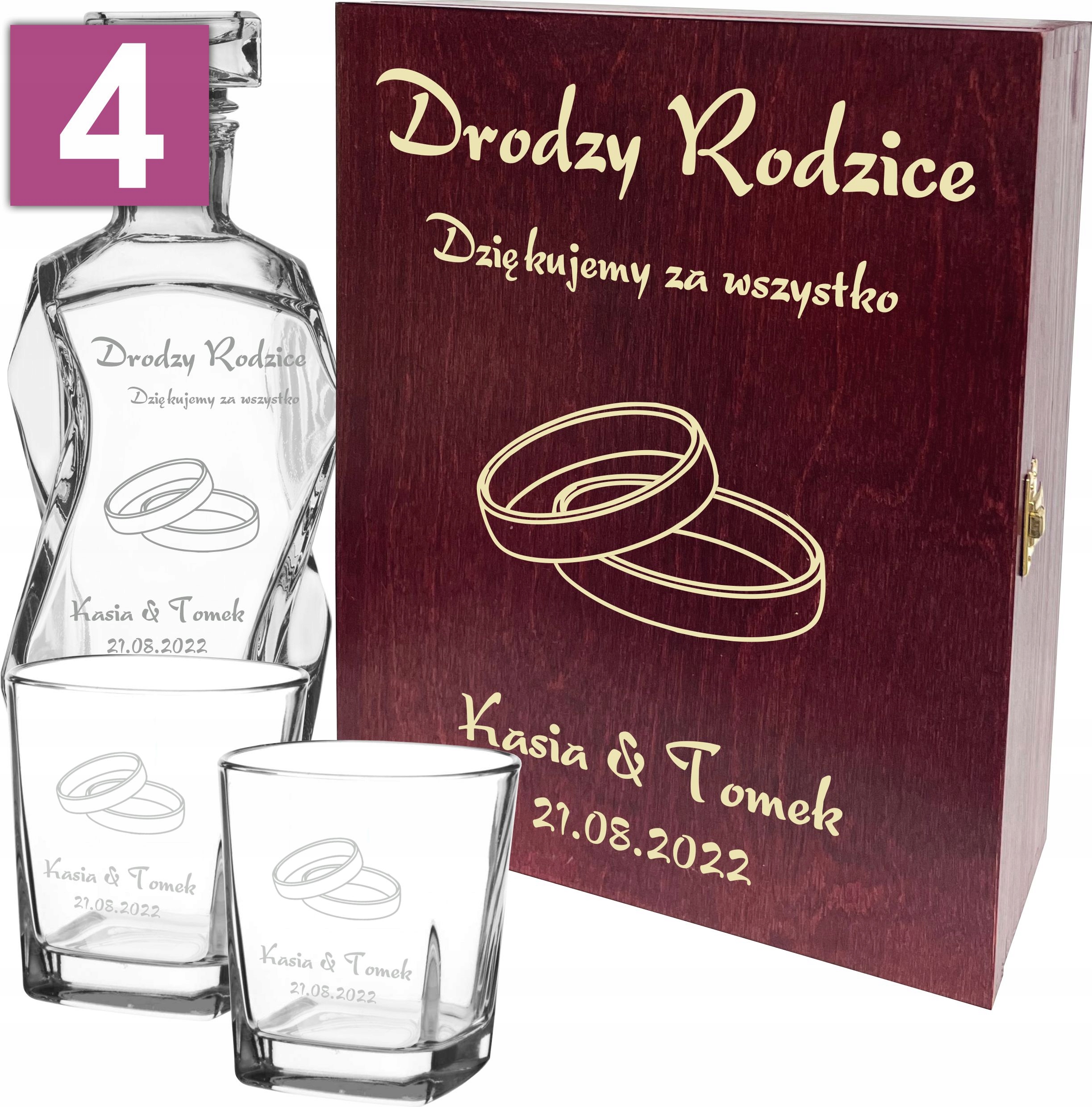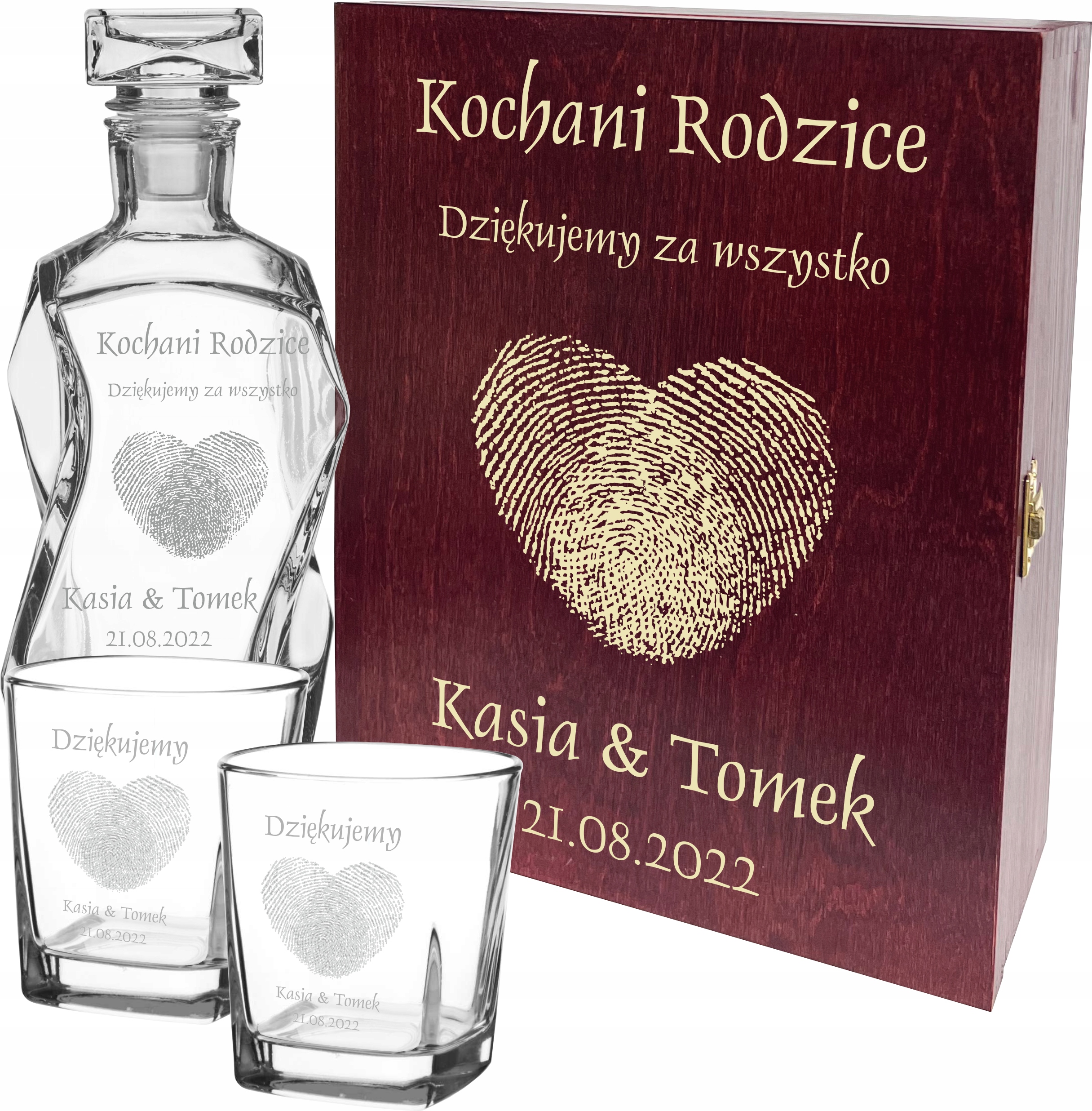 Спасибо родителям - графин + 2 стакана + деревянная шкатулка с гравировкой