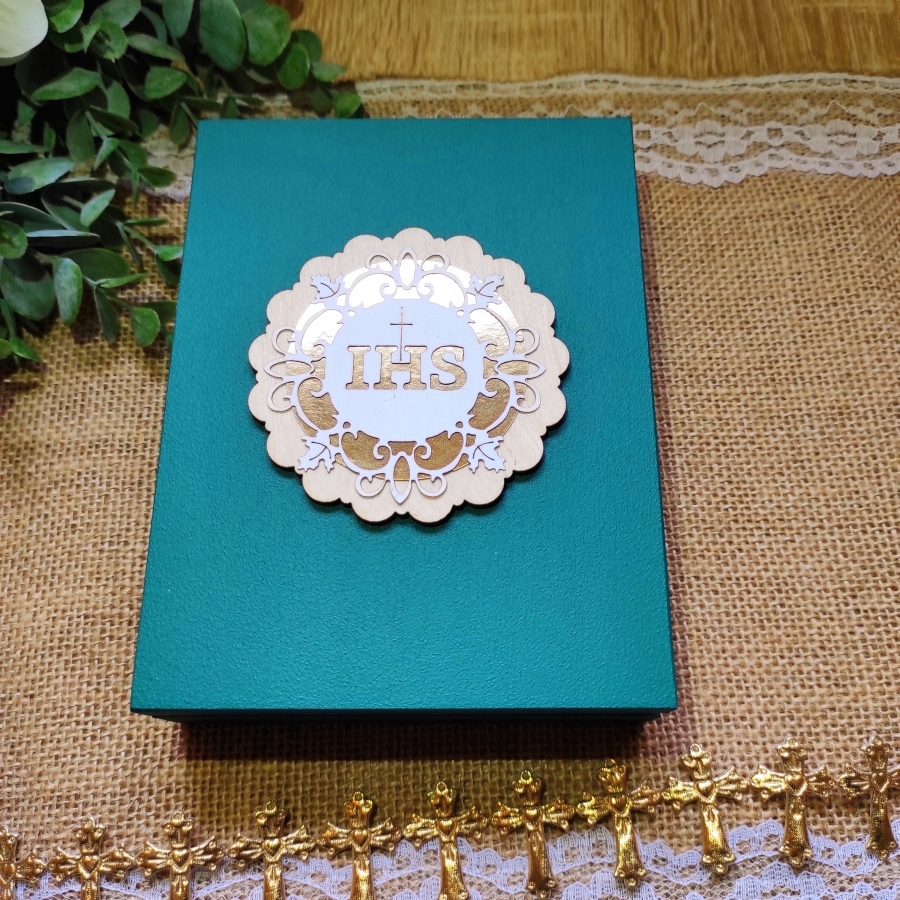 - На коробочке сверху имеется декоративная надпись, вырезанная из фанеры и Знак IHS размещен на зеркальной подложке.