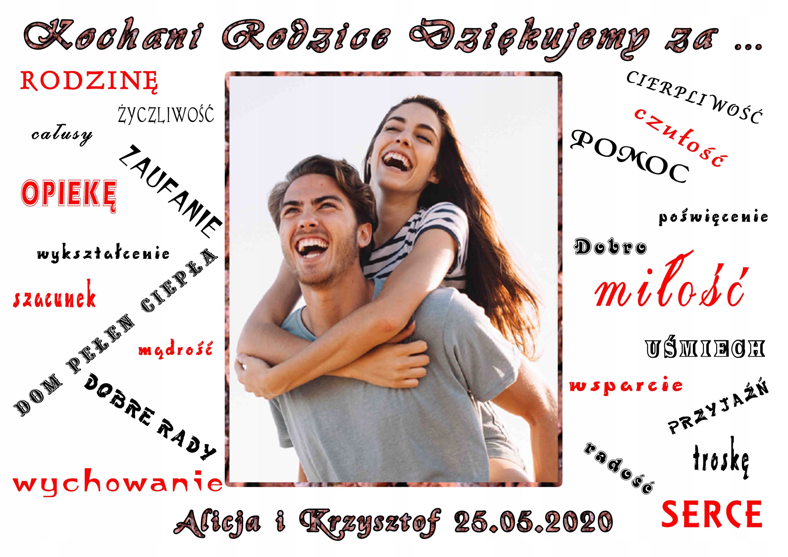 Podziękowanie dla rodziców ślub A4