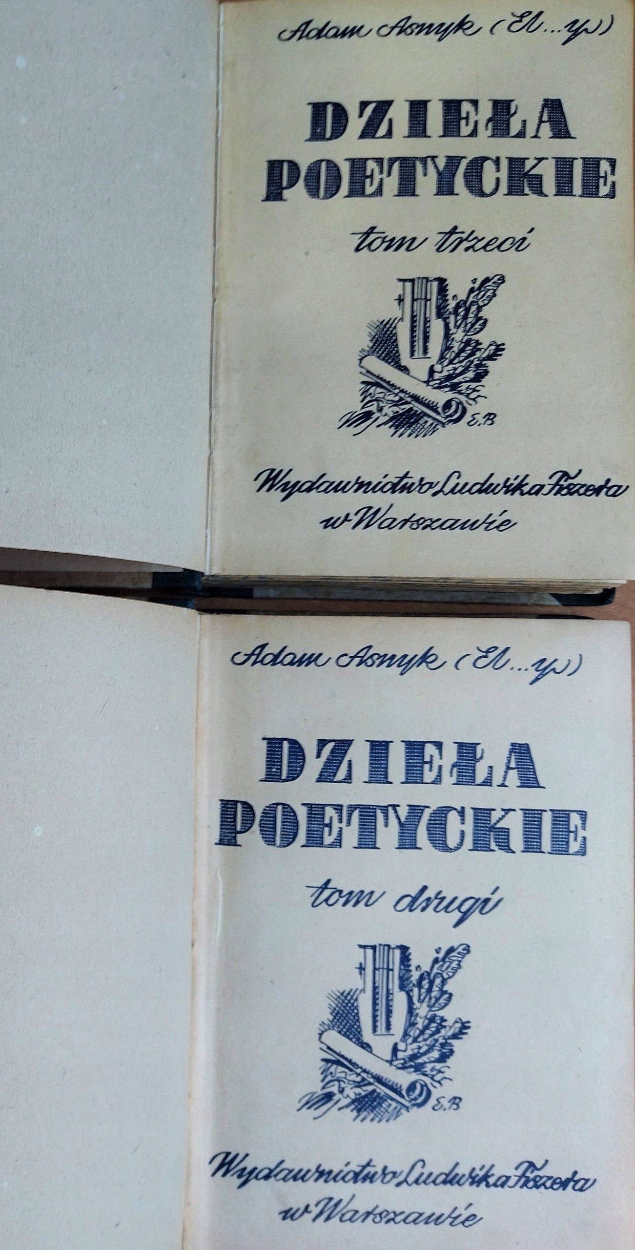 Адам Асик Поэтические работы Том 2 и 3 Издательство Людвик Фишзер в Варшаве (без знакомств), обложка в твердом переплете. 20 x 15 см, страницы 308 + 268, состояние + хорошее (старые марки, маленькие раковины)