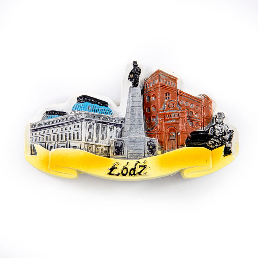 Магнит, классический. Форма этого магнита была недавно вырезана лучшими талантливыми художественными адептами с Дальнего Востока. Каждый кусок -это рука, так что нет двух одних и тех же копий. На магните, что наиболее известно в Лодзи: скамейка с тувимом, памятником Кошчиузко, Мануфатуру и Познанским дворцом