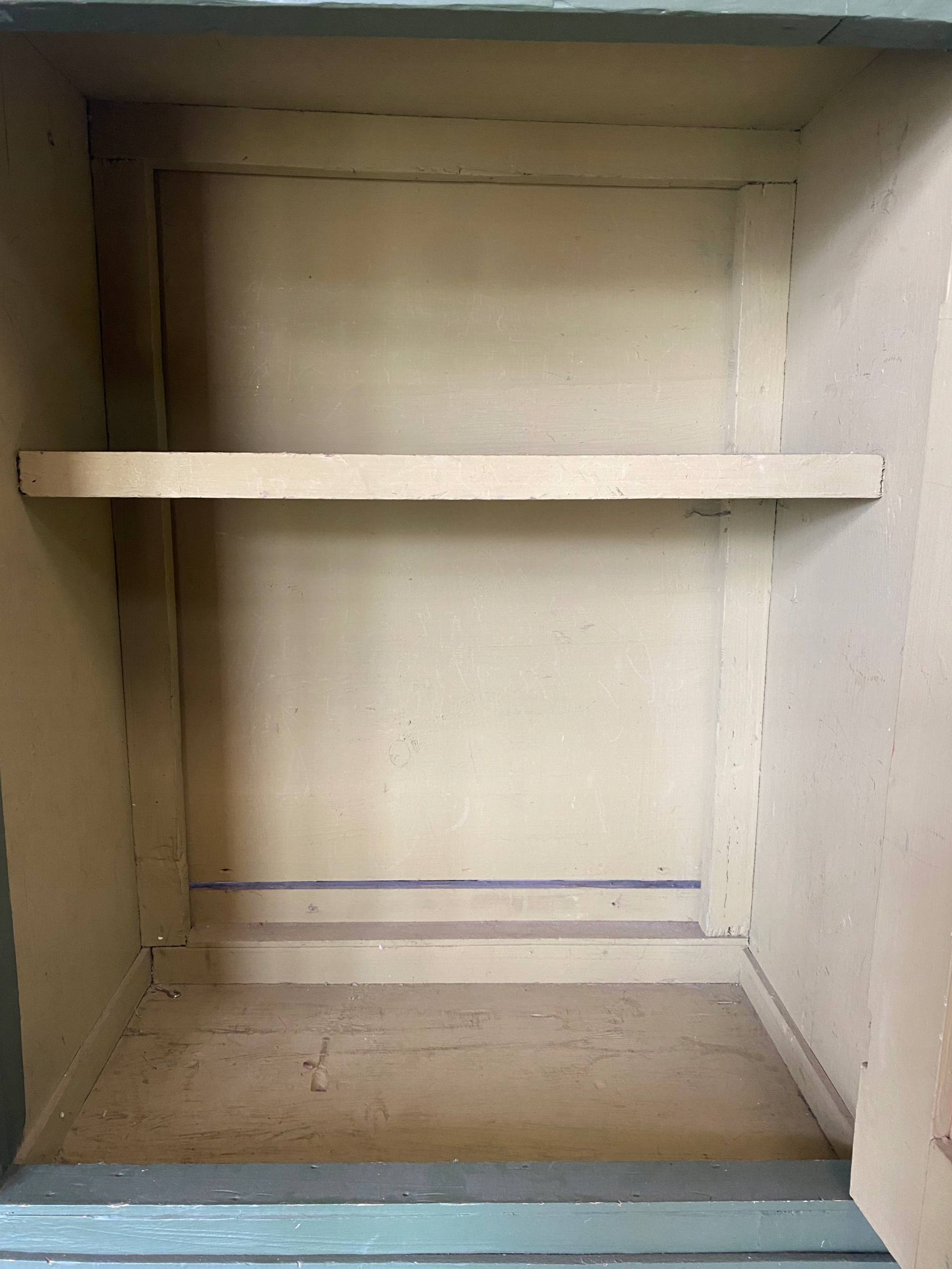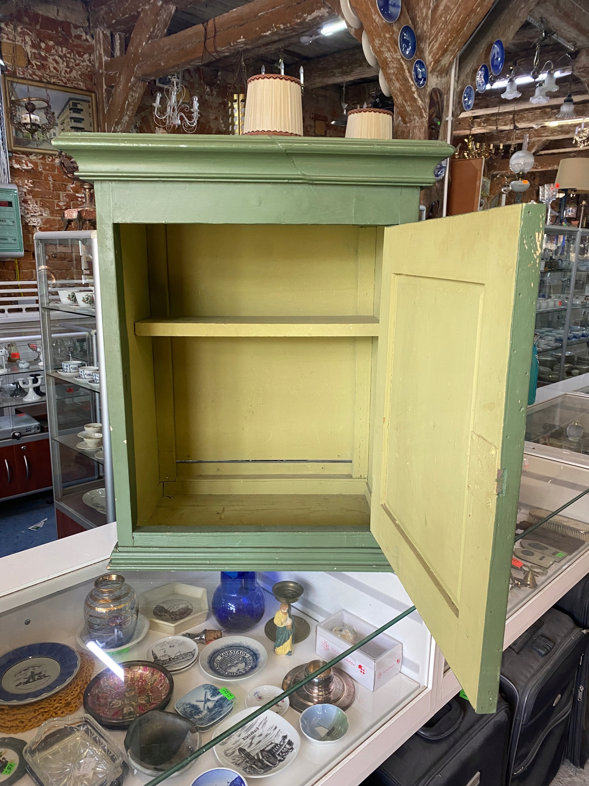 Пофарбована в зелений колір навісна шафа, аптечка, вітрина