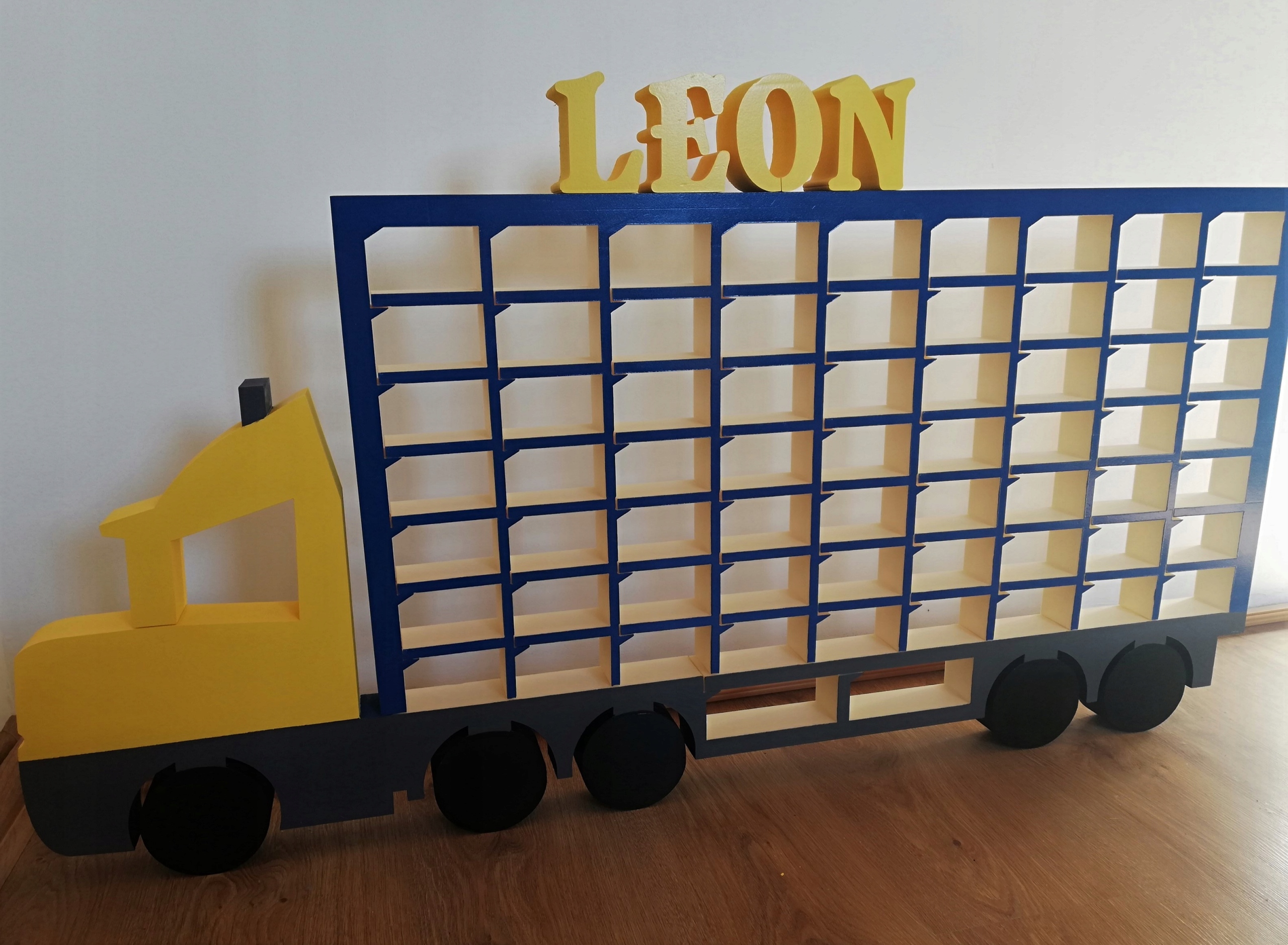 Грузовик можно красить аэрозольной краской или кистью (только краска без растворителя). Приклеивать машину к стене лучше всего акрилом или использовать двусторонний скотч только с поролоном, тогда машина будет устойчивой и выдержит вес машин. Грузовик изготовлен из стиродура. Материал тверже пенопласта, но не такой твердый, как фанера.