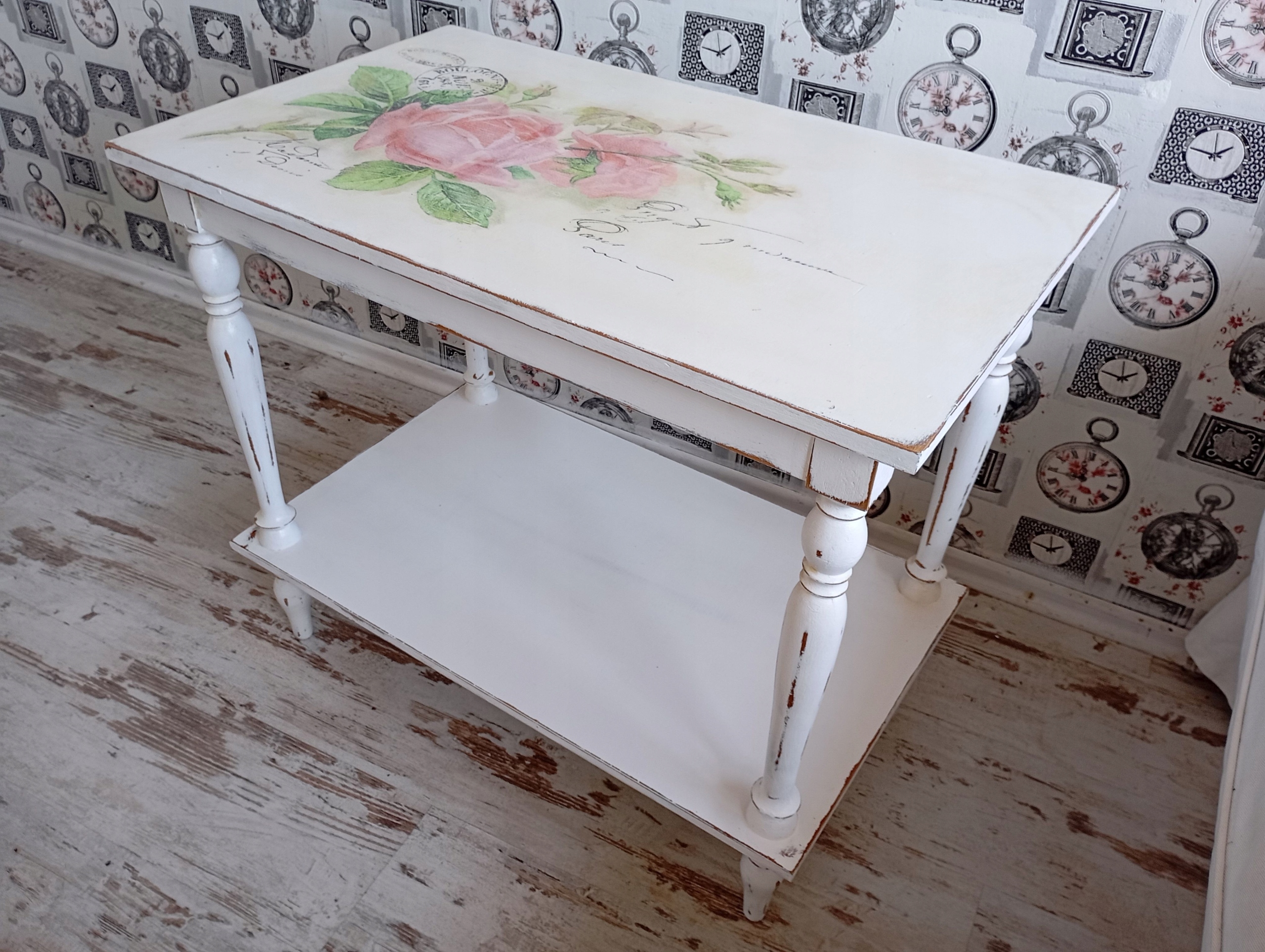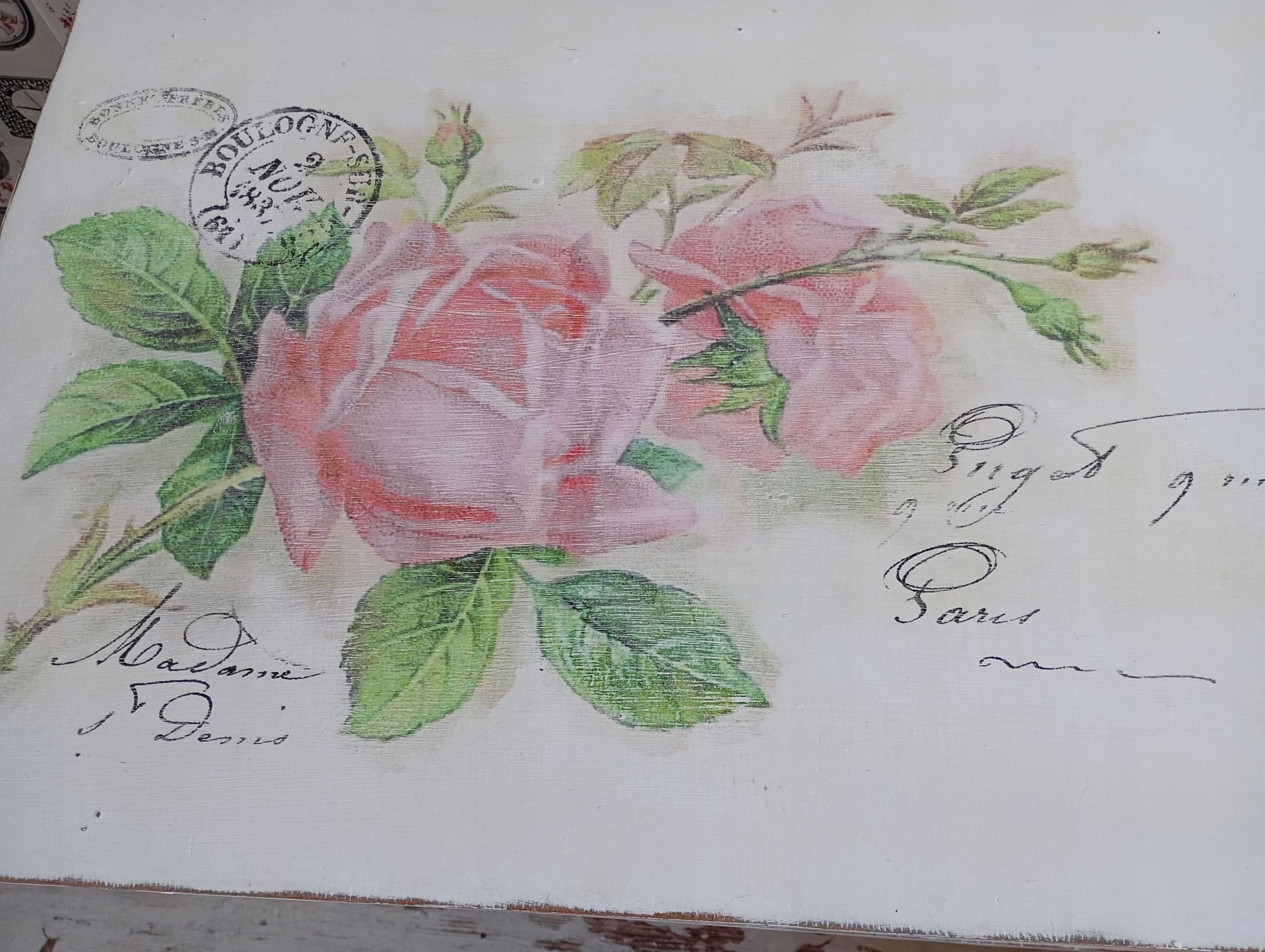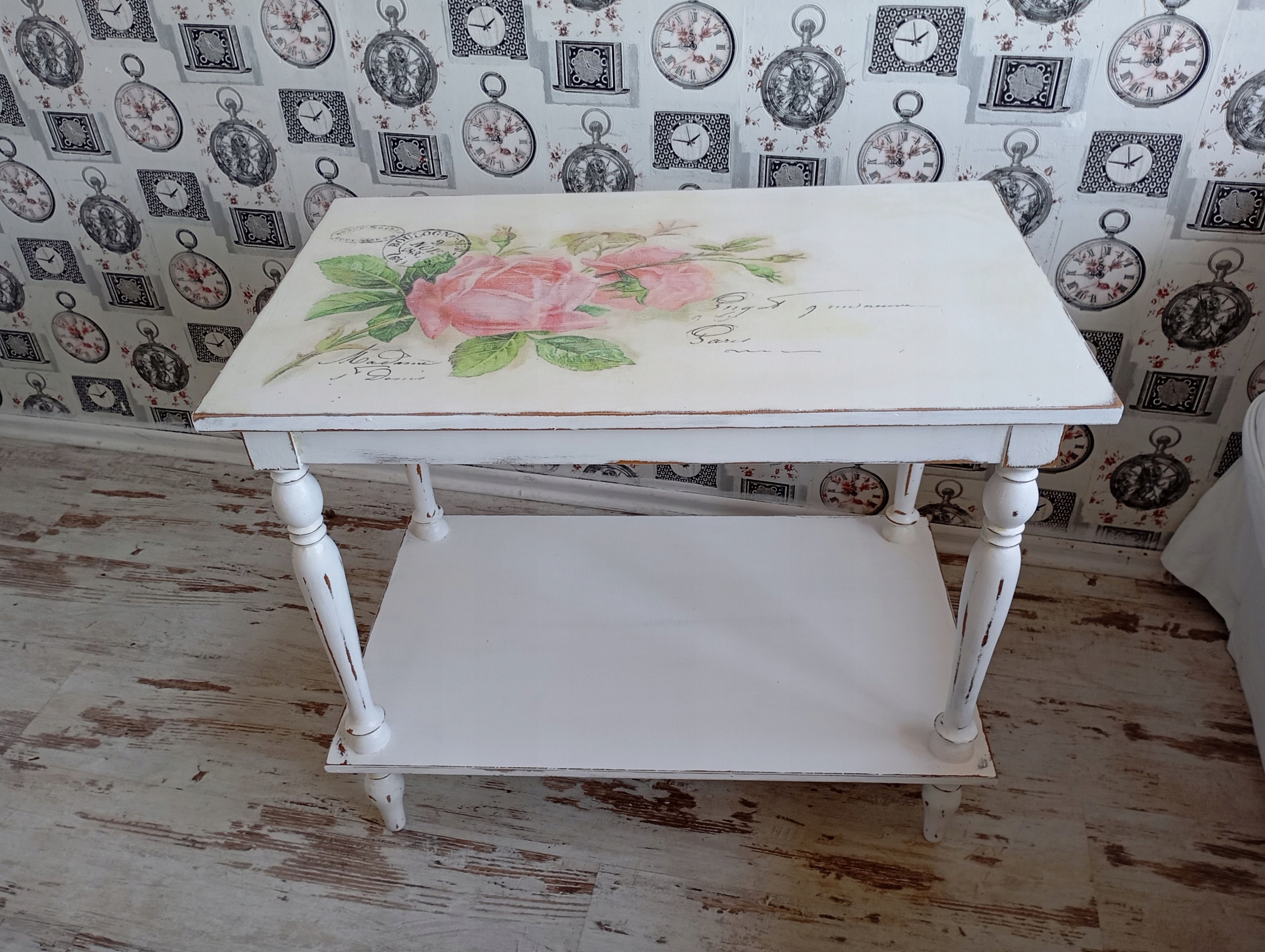 Нарисованный стол, роза, потертый шик
