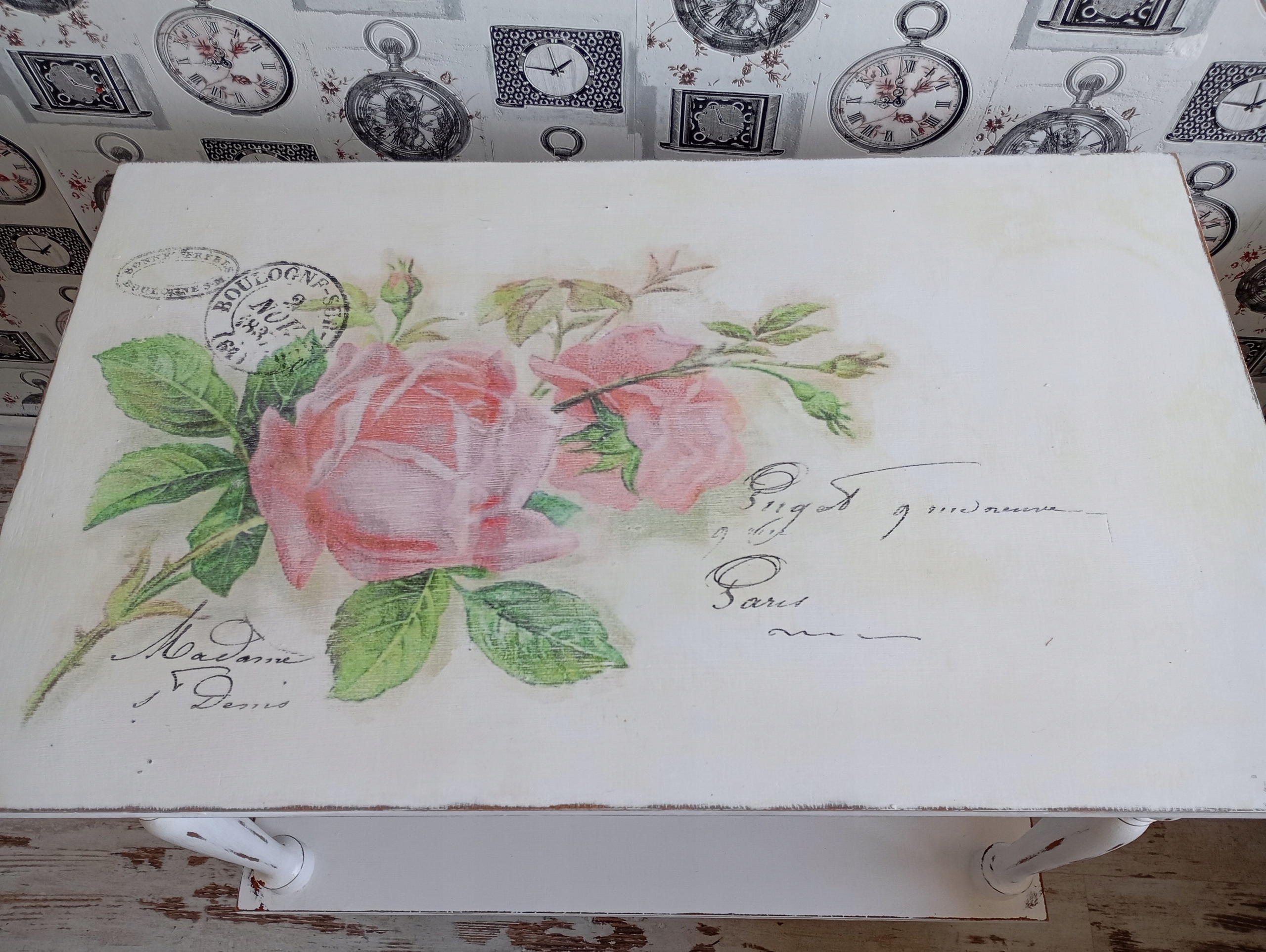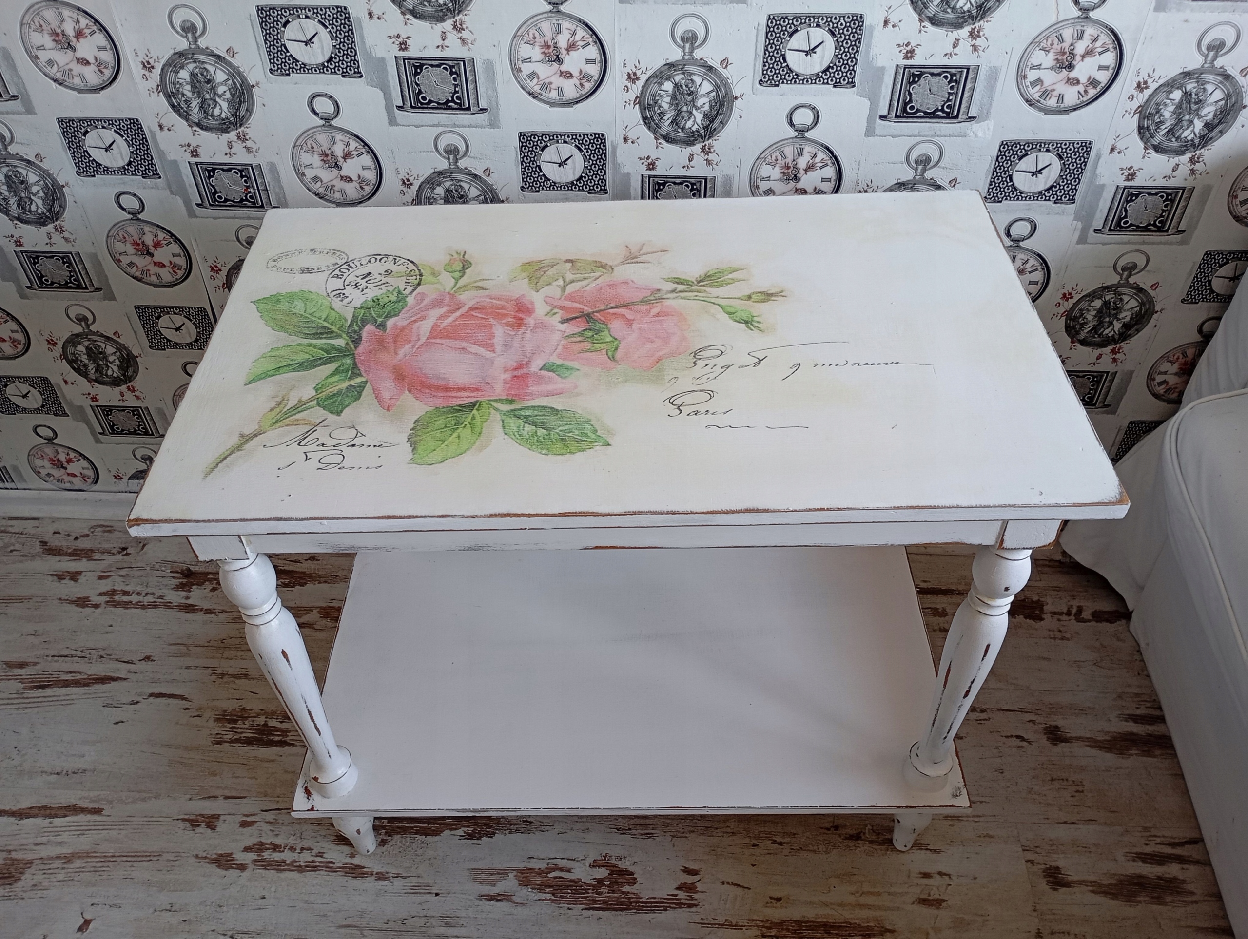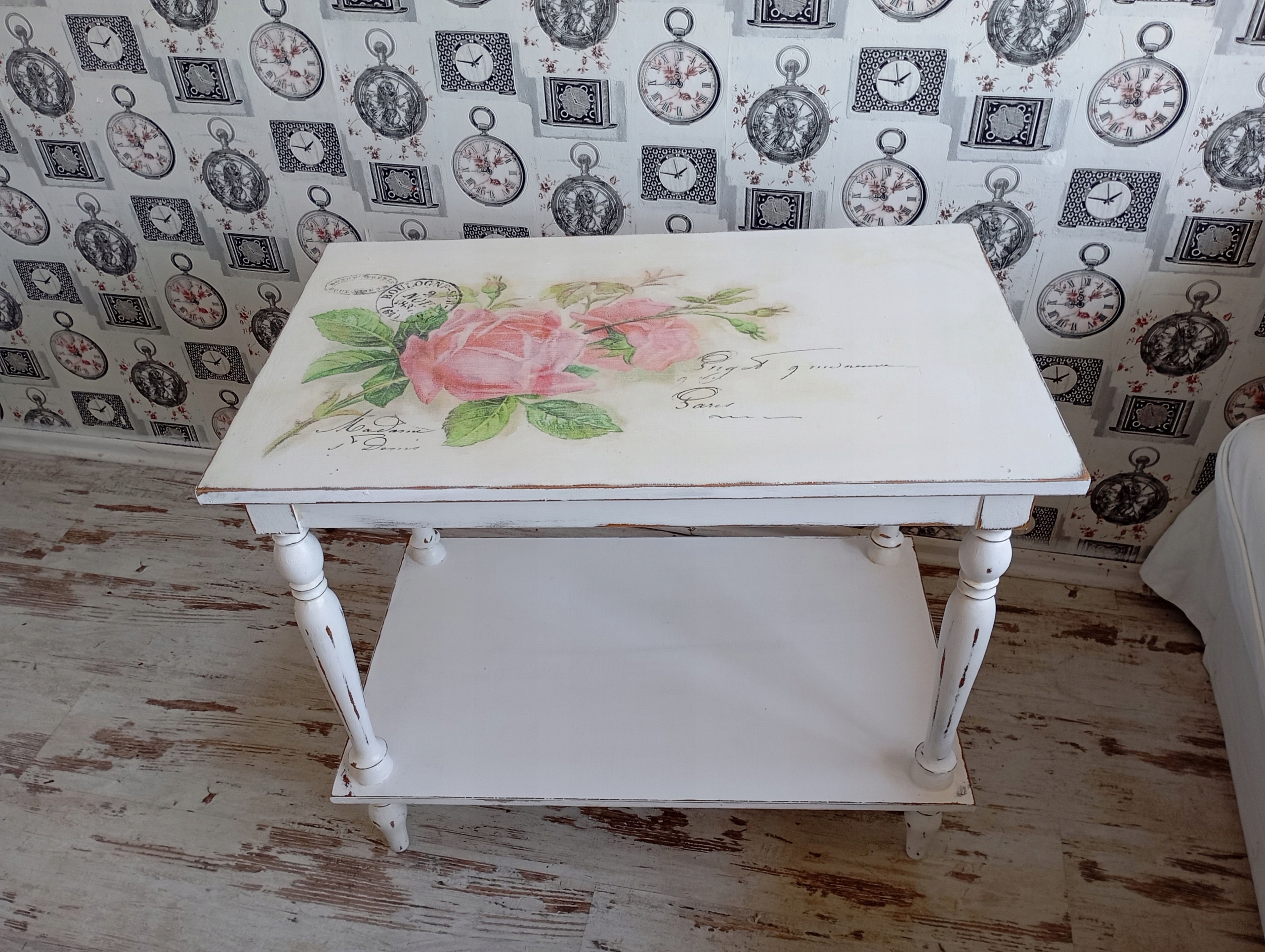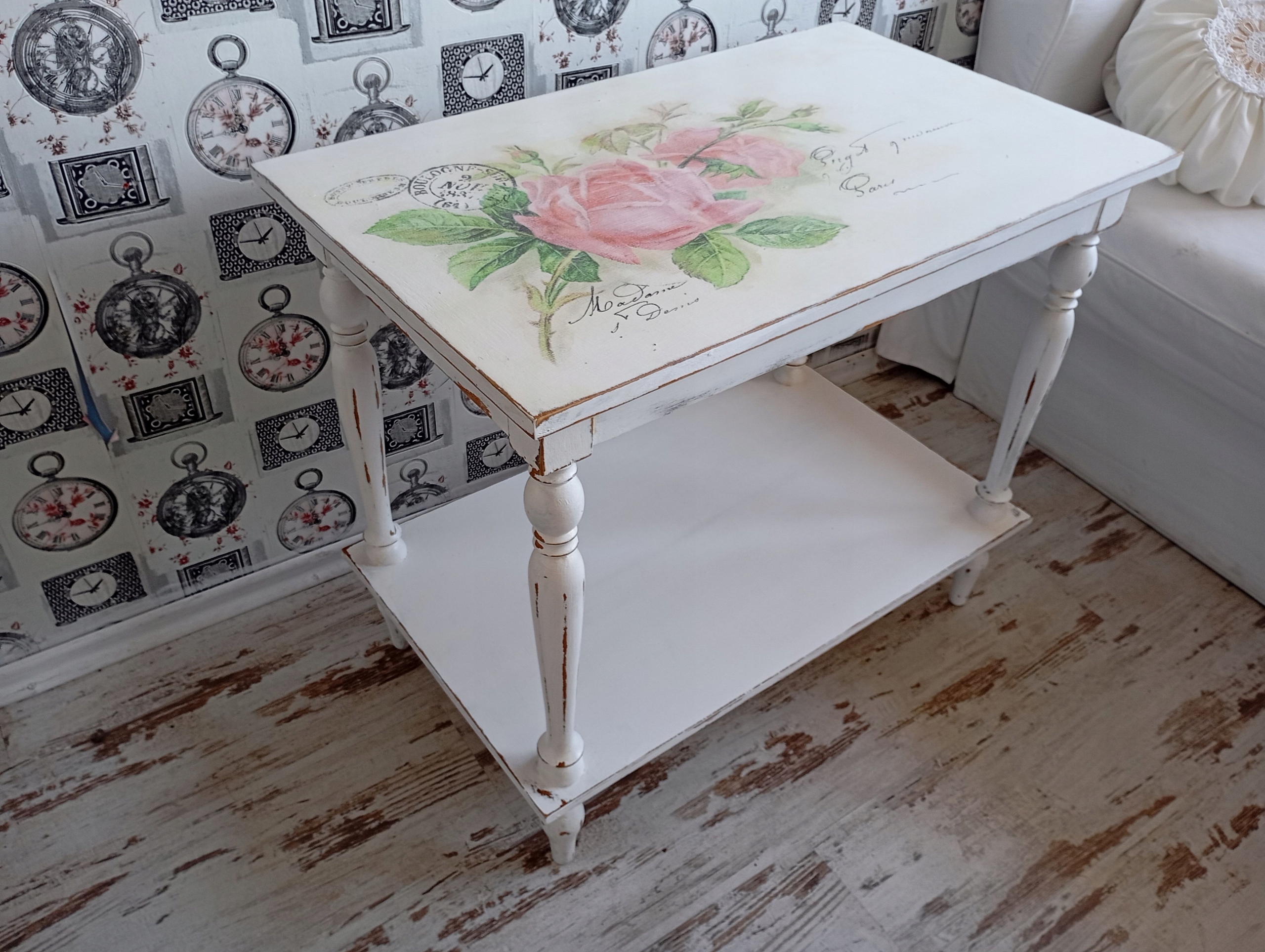 Нарисованный стол, роза, потертый шик