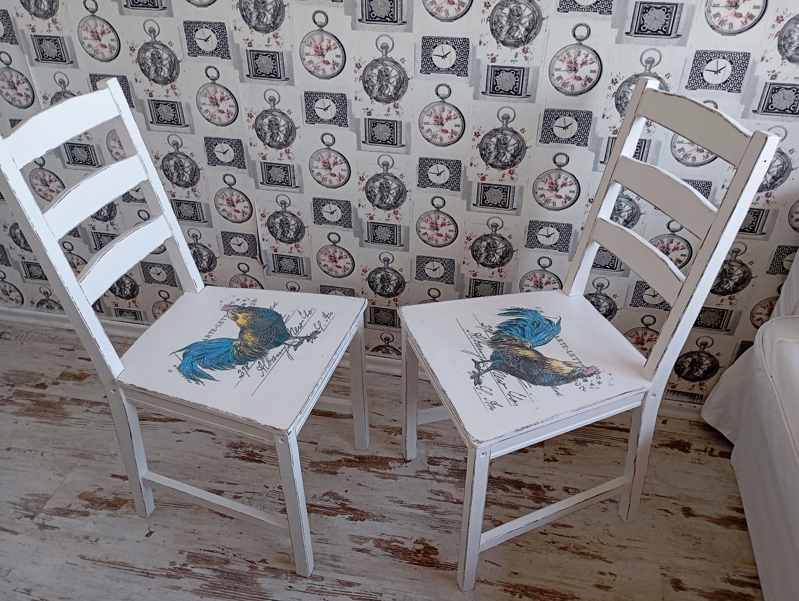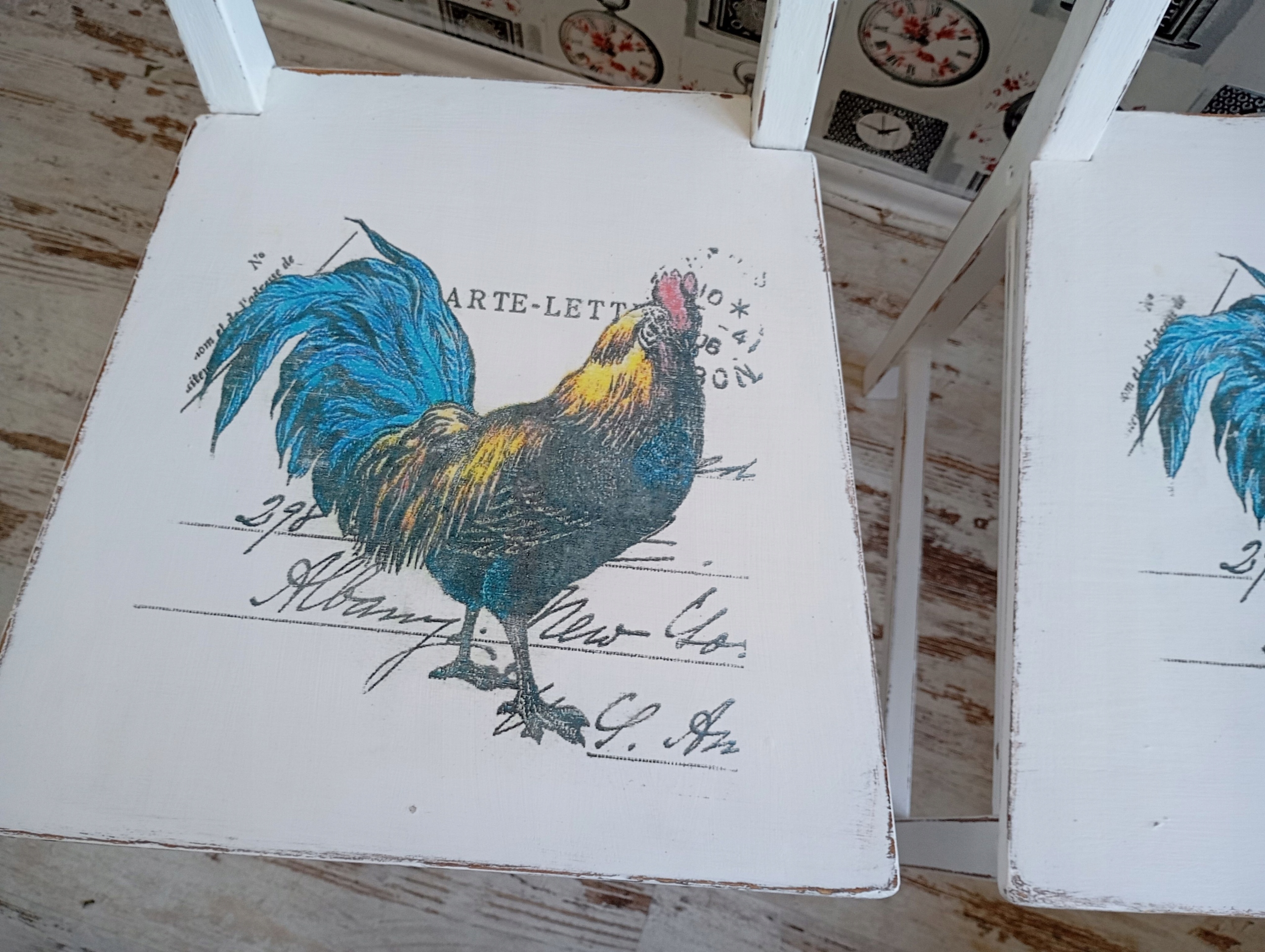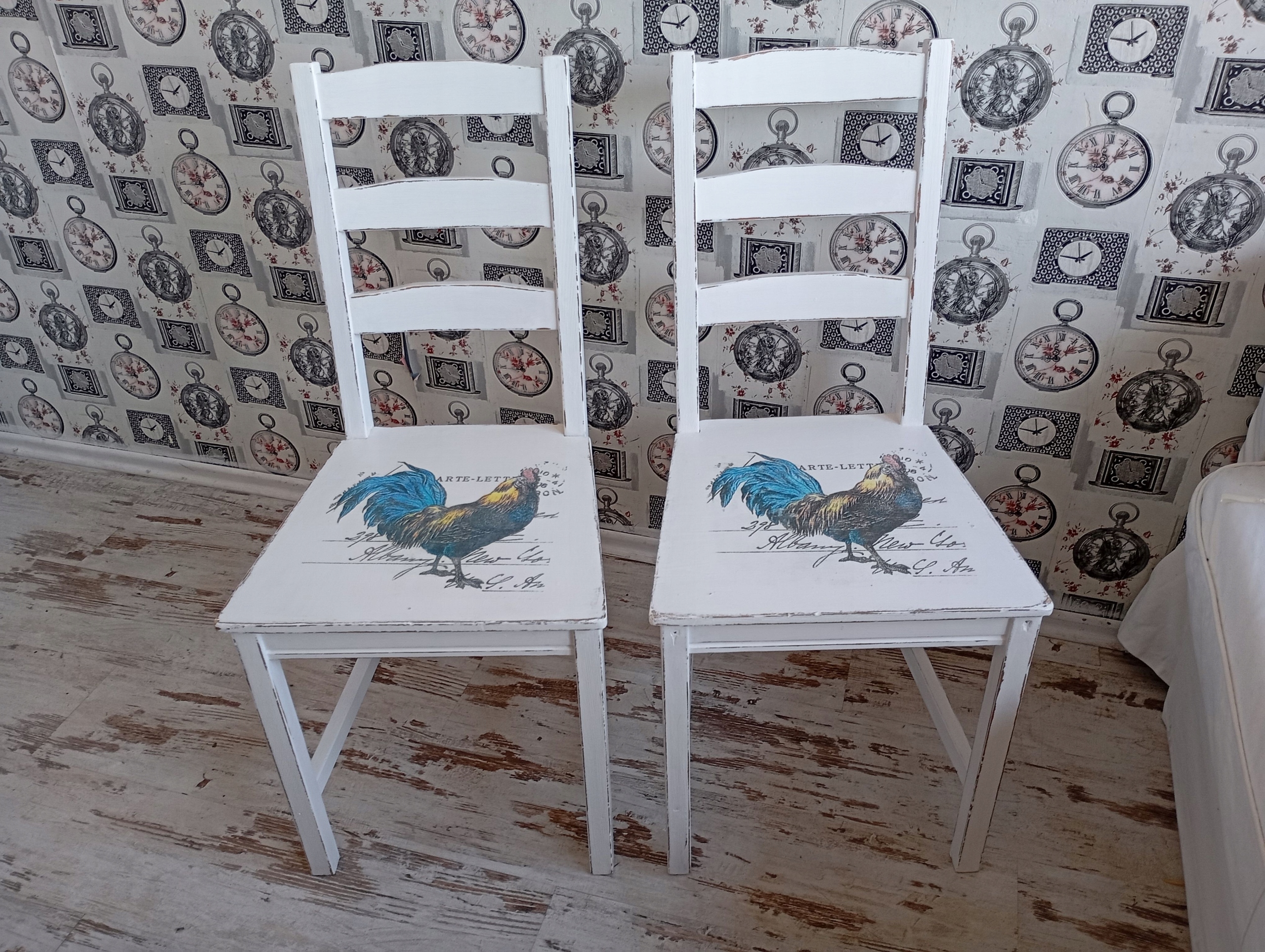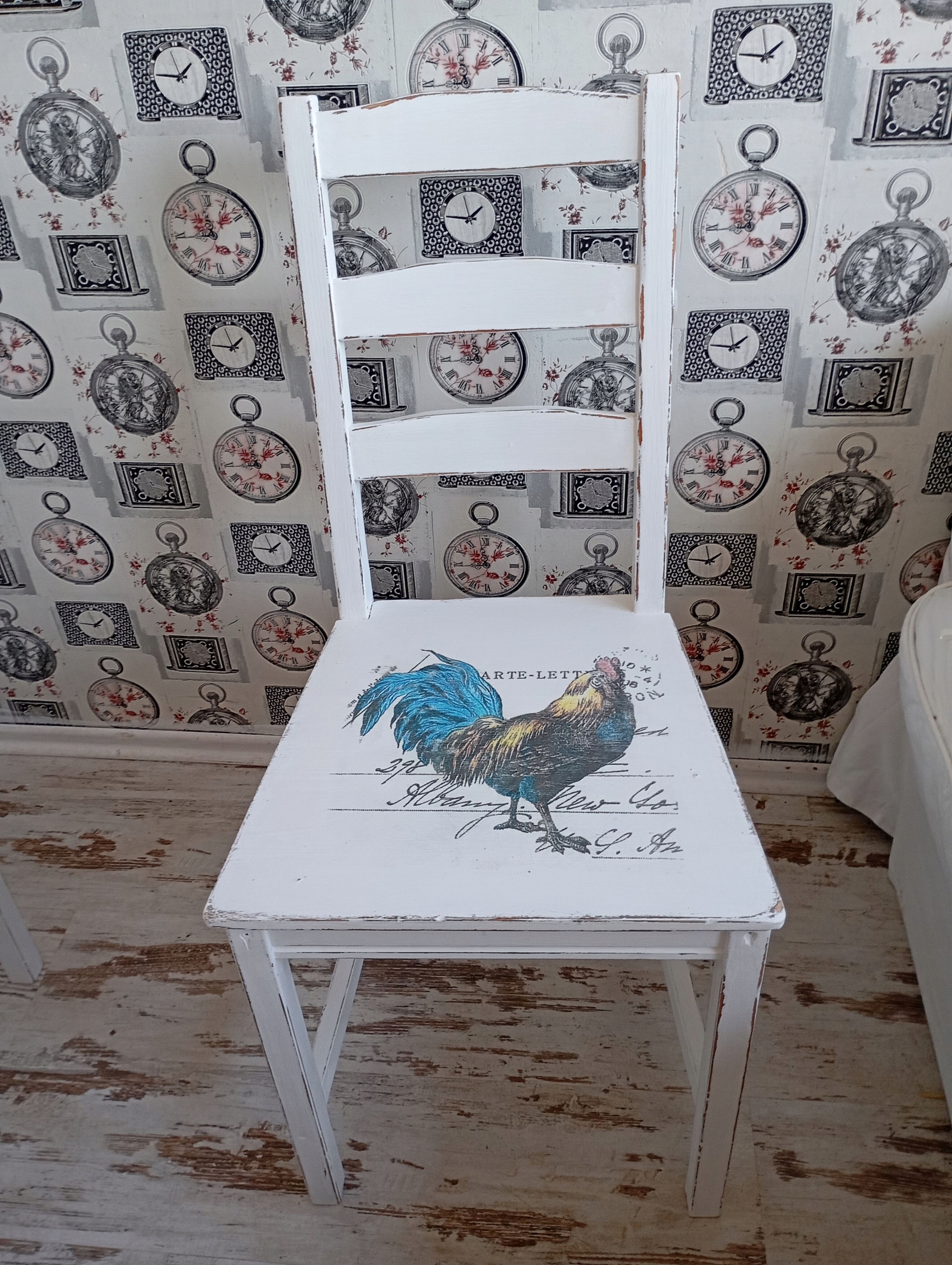 Окрашенный стул, петух, потертый, после обновления