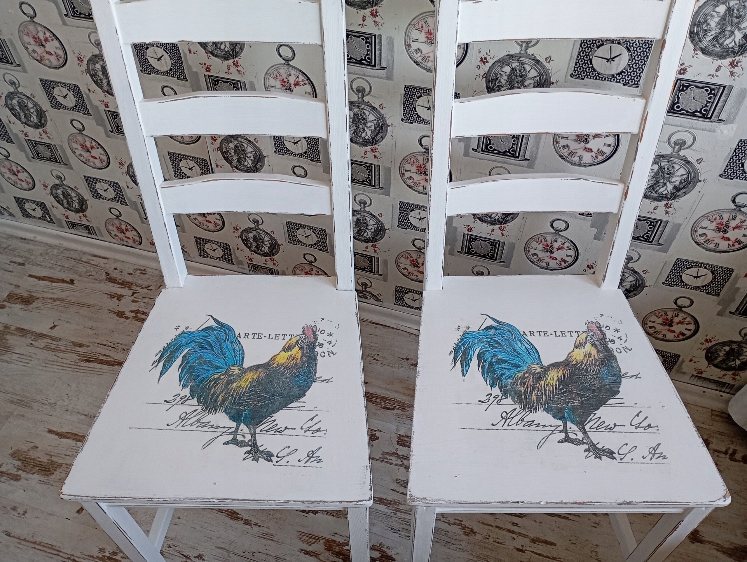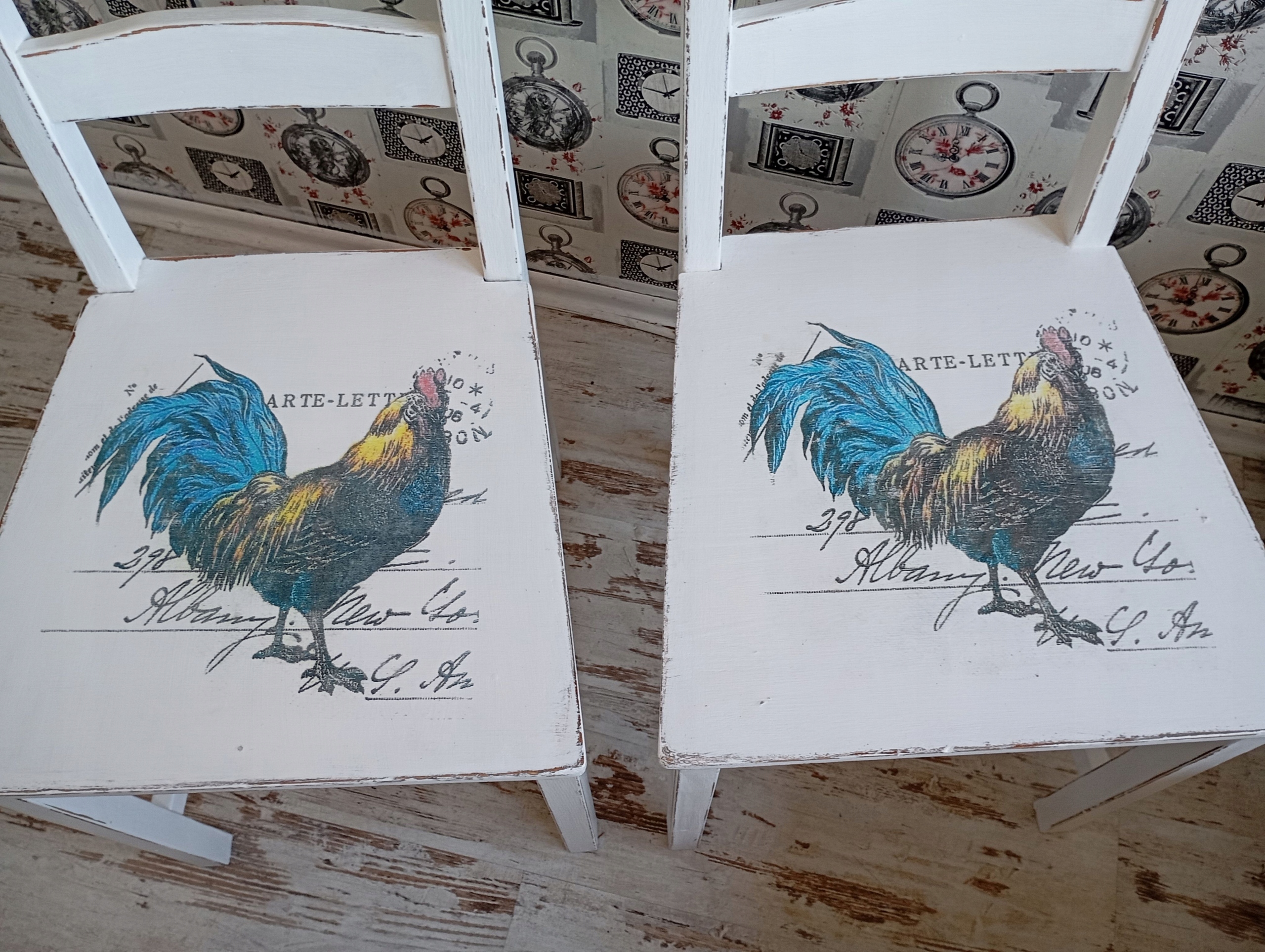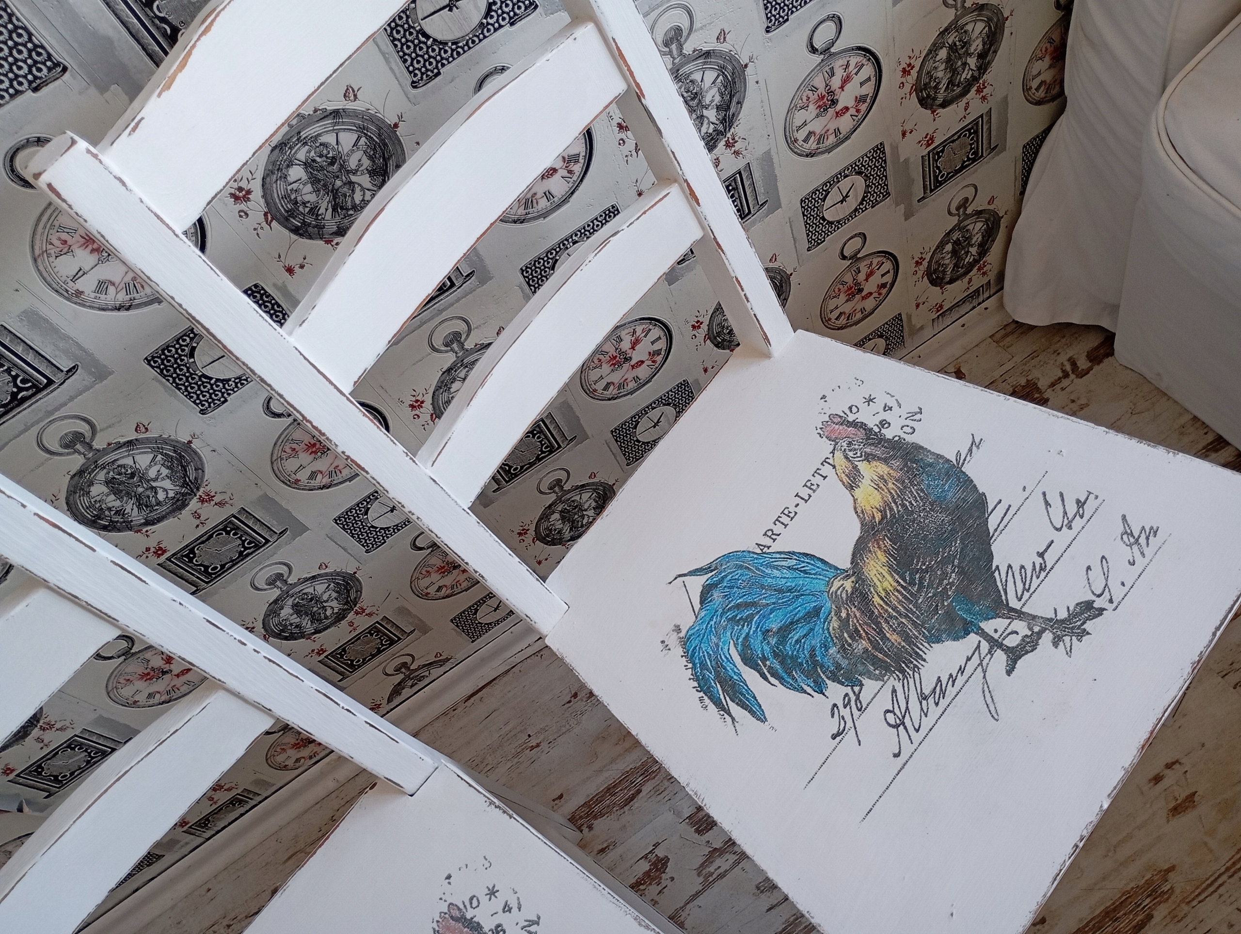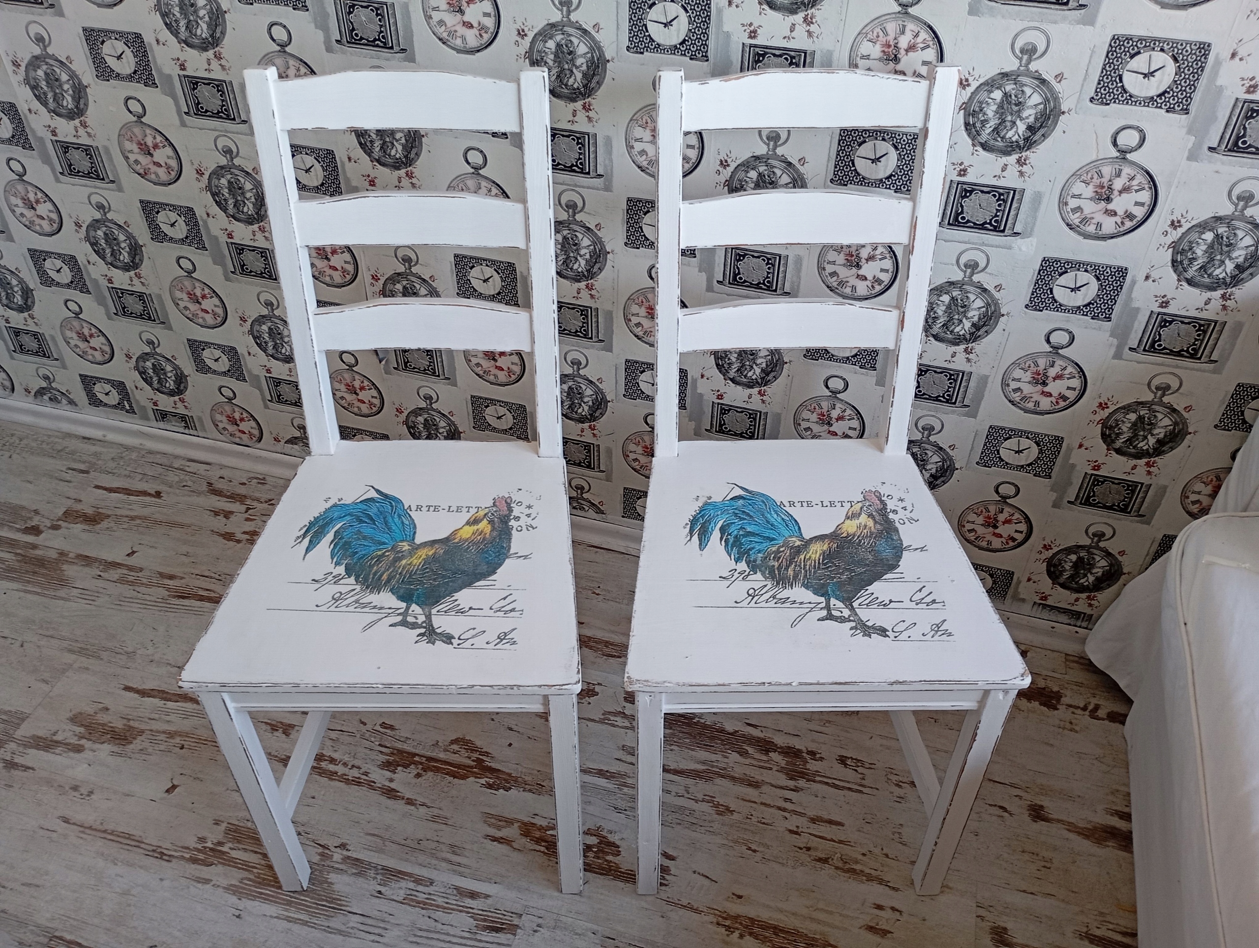 Окрашенный стул, петух, потертый, после обновления