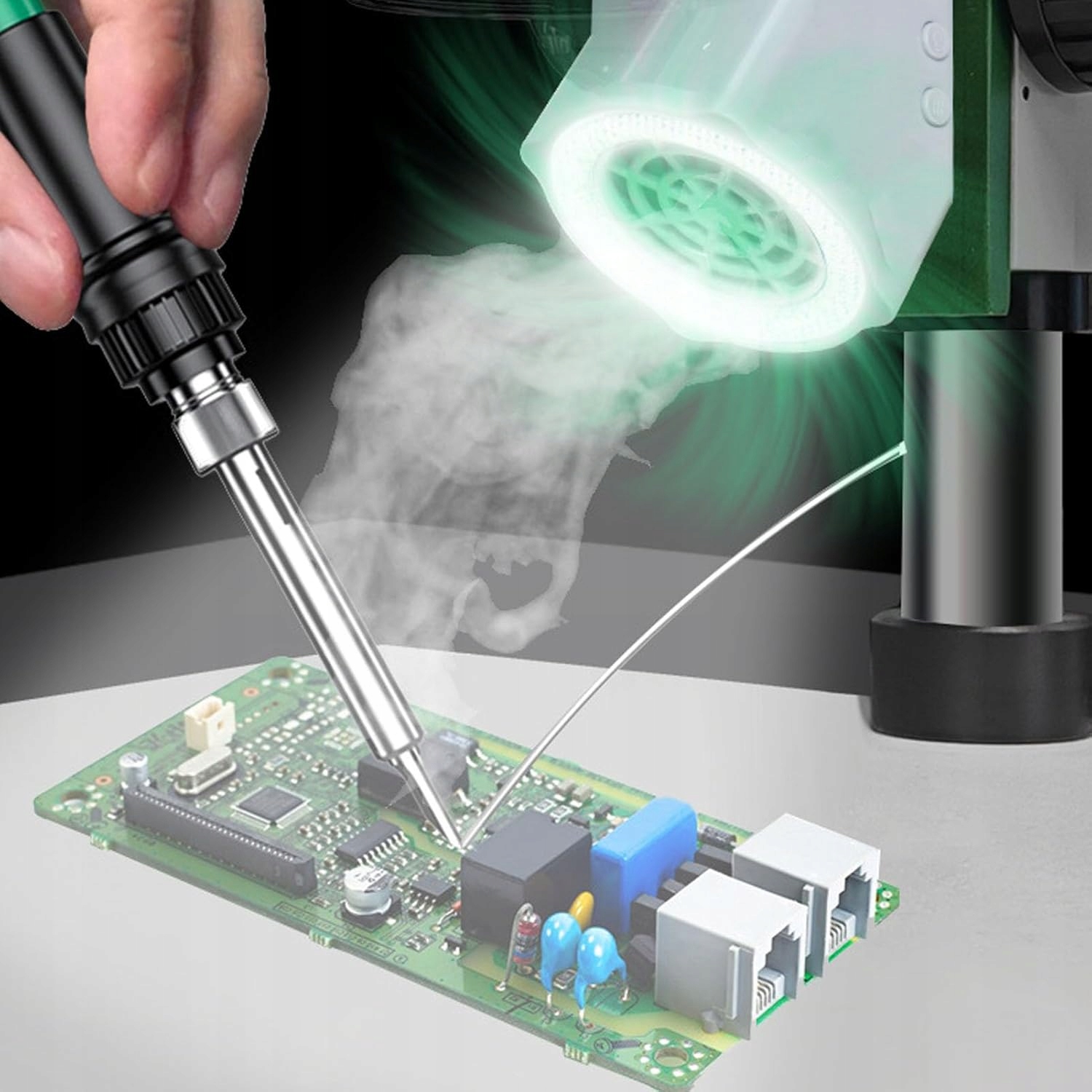 Вентилятор высокой скорости 7600 об/мин и 3-ступенчатая регуляция мощности всасывания позволяет эффективно удалять пары, возникающие во время пайки и сварки. Это надежная поддержка в поддержании чистого воздуха.
