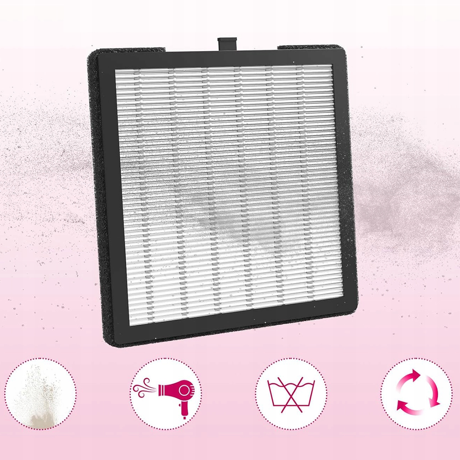 - - Благодаря съемной конструкции вы можете легко удалить фильтр и очистить его сдувкой или пылевой щеткой. Следует помнить, что фильтр не может быть промыт.