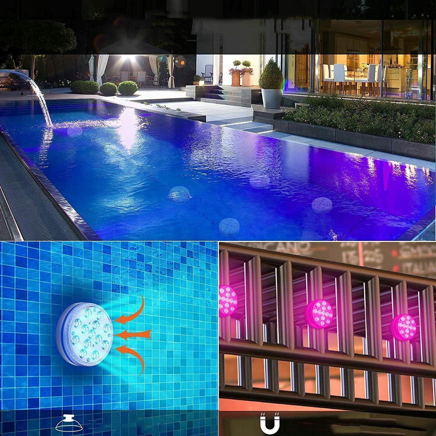 🌈【IP68, 100 % водонепроницаемость】 Лампа для подводного бассейна сертифицирована по стандарту IP68. Используя высокоэффективный водонепроницаемый материал, он идеально подходит для украшения дома, поместите его в вазу, аквариум, бассейн, пруд или любой контейнер с водой, чтобы осветить ваш дом и жизнь.