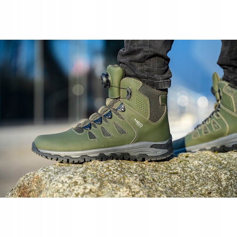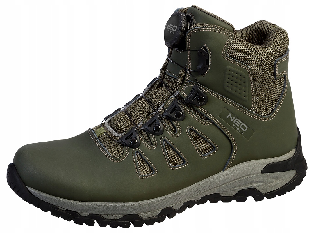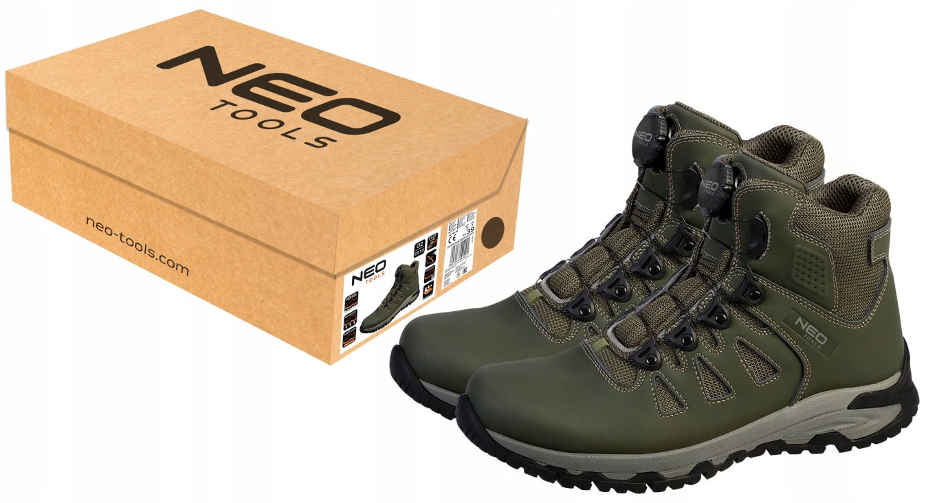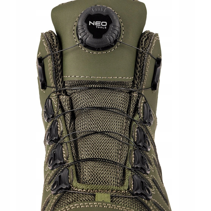 Кроме того, вставка пены Hi-Pola и встроенный каблук обеспечивают поглощение энергии в части пятки, увеличивая комфорт использования. Обувь Neo Tools обладает антиэлектростатическими свойствами, а также устойчивость к маслам, бензину и другим органическим растворителям. Они рекомендуются для поездок в лес, горы, а также для работы снаружи и внутри, где лифты не требуются, а достаточной адгезии к земле.