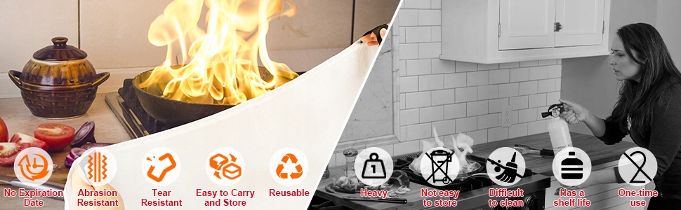 Пожарное одеяло Flintronic Kitchen, быстрое в использовании, огнестойкое стекловолоконное одеяло, подходящее для домов, офисов, кемперов, школ и других мест (2 шт. - 1 х 1 м)