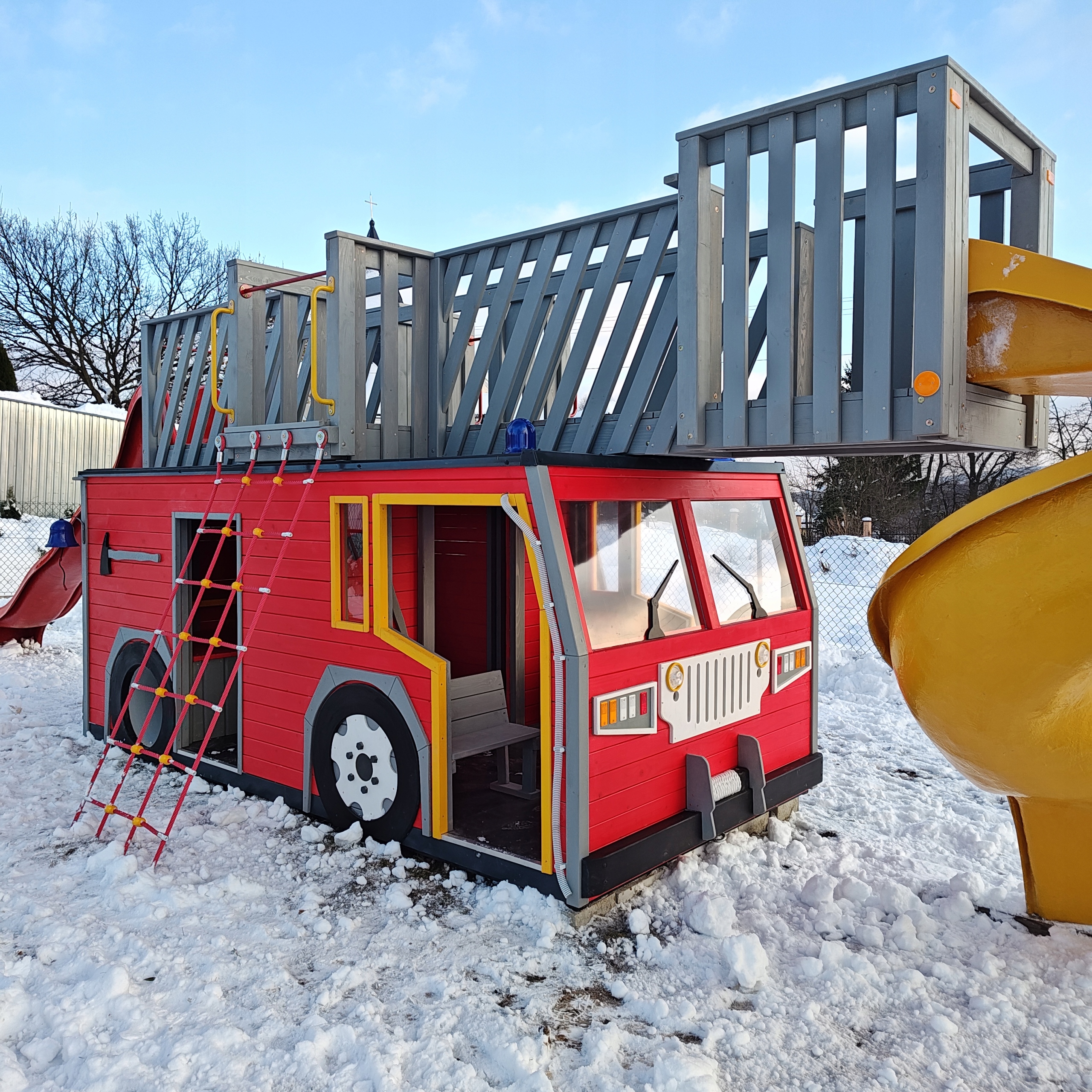 Деревянная игровая площадка в виде пожарной машины — аттракцион, привлекающий внимание не только своим цветом, но и очень аутентичной формой и широким набором игровых элементов. р>