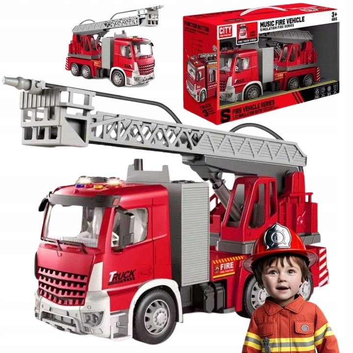 ПОЖАРНАЯ МАШИНА ДЛЯ ДЕТЕЙ ЗВУК СВЕТ ВОДА ПОДВИЖНАЯ ЛЕСТНИЦА 39 СМ