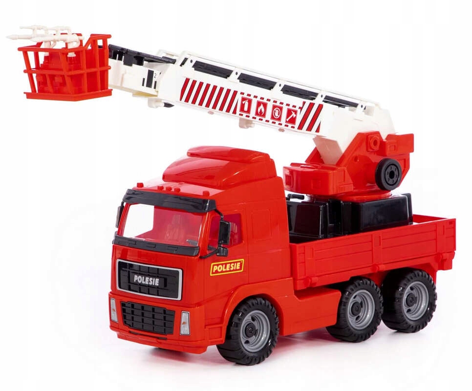 пожарная бригада представляет собой большой автомобиль, оборудованный широкими колесами, соединенными металлическими осями. Их структура не гладкая, что облегчает управление неровными поверхностями. Полуотборщик имеет лестницу, которая вращается вокруг своей оси, которая может быть поднята и перемещена. В конце есть корзина, особенно для статуэтки маленького героя. Стороны автомобиля также открыты. Ребенок может подражать работе настоящей пожарной команды. Водительская каюта застеклена. Толстый, прозрачный пластик использовался для этой цели.