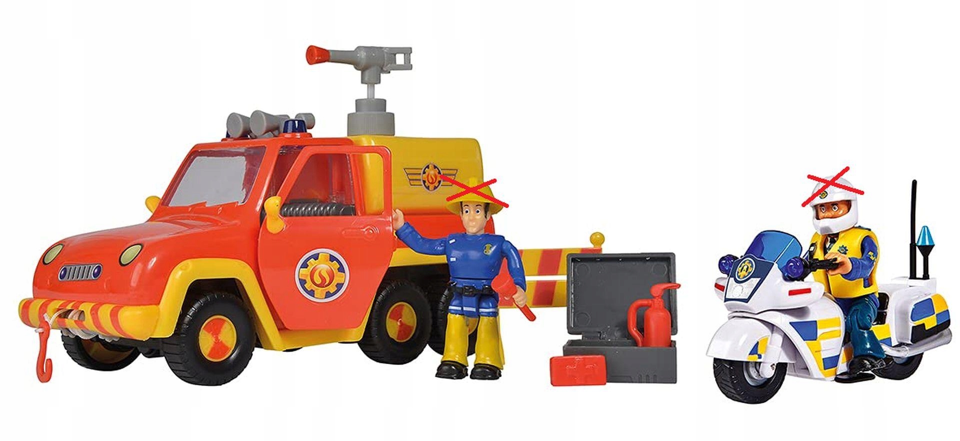 Дефект в виде сломанного крюка у пожарной машины - виден на фото. На фигурках нет шлемов - видно на фото. Следы использования в виде мелких царапин. Сертифицирован CE.