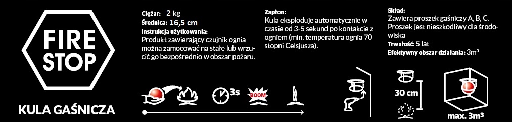 Огонь является мощным элементом, почти непреодолимым и очень трудным для обнятия - он очень быстро распространяется, в сторону и освещает все, что он встречается на своем пути, включая различные типы материалов (дерево, пластик, бумага, а также легковоспламеняющиеся материалы). Огонь часто погашает, ограничивая его распространение, а затем интенсивно умирает. Также используйте иначе, чем просто прикрепив его на стене или потолка. Вы можете иметь это с вами, например, в машине. Мяч можно бросить или трахать в огонь, который является источником, например, Тлеющие кабели, электрическое короткое замыкание или воспаление автомобильного двигателя в автомобиле.