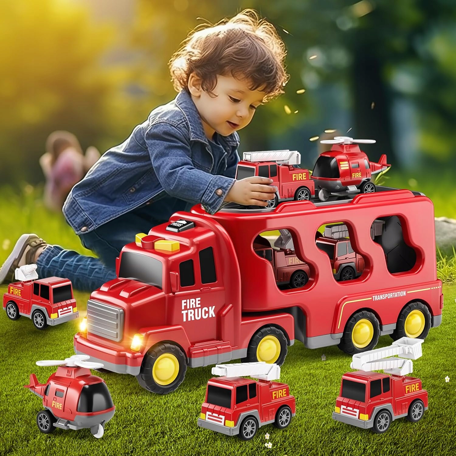 🔥 7 В 1 ИНЕРЦИОННАЯ АВТОМОБИЛЬ, АВТОМОБИЛЬ ПОЖАР ГРУЗОВИК, АВТОМОБИЛЬ-ХРАНИТЕЛЬ (С ОДНОЙ КНОПКОЙ С ФУНКЦИЕЙ СВЕТА И МУЗЫКИ, ПОСТАВЛЯЕТСЯ БЕЗ АККУМУЛЯТОРА!) КРАСНЫЙ
