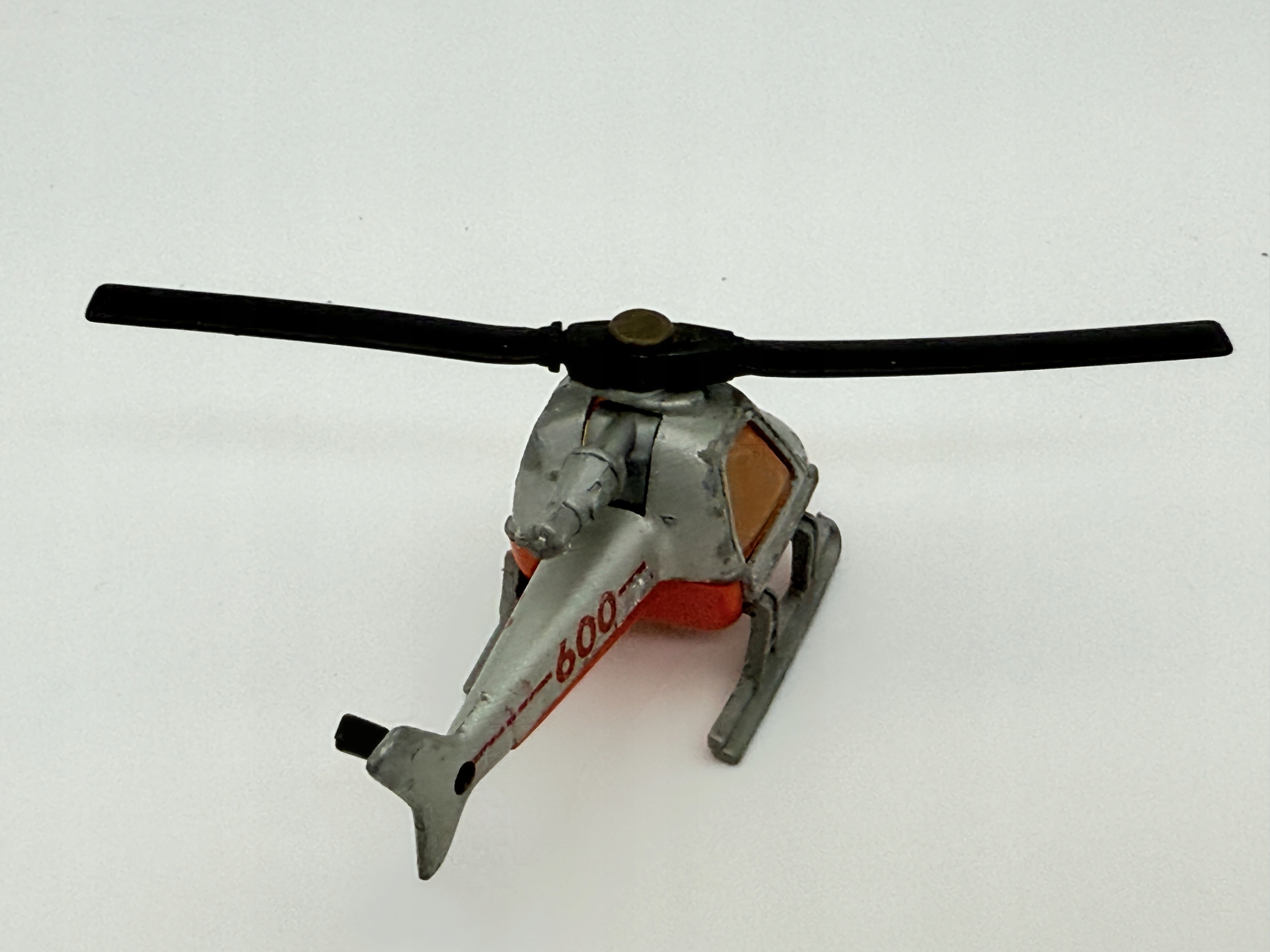 Модель, помеченная в каталоге № 600, была произведена Matchbox в Англии. В нижней части есть надпись «Hatchbox Helicopter Lesney England 1: 110 1982», которая указывает на год производства. У него нет кода EAN, который может предположить его более старое происхождение и потенциальную редкость на рынке коллекционера.