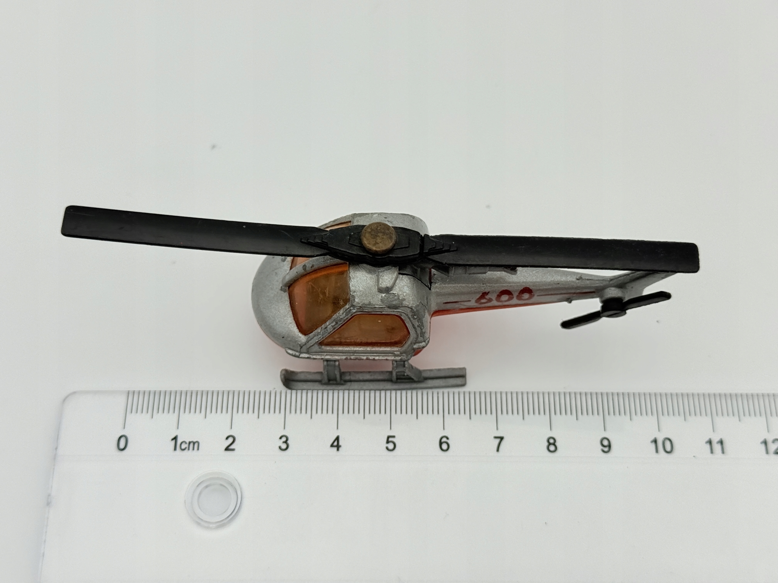 Этот вертолетный спринклер Matchbox, отмеченный номером 600, представляет собой уникальную модель из металла, которая придает ему прочность и долговечность. Модель отличается серебром с оранжевыми окнами и черными пропеллерами, что привлекает внимание и добавляет к нему динамику. Длина 101 мм в шкале 1: 110 делает его точно воспроизводимый миниатюрный вертолет. Структурные детали, такие как живопись и чистая маркировка, дают ему реализм и подлинность. Несмотря на царапины и складки, которые свидетельствуют о его истории, модель сохраняет хорошее состояние и, безусловно, будет ценным приобретением для каждого коллекционера.