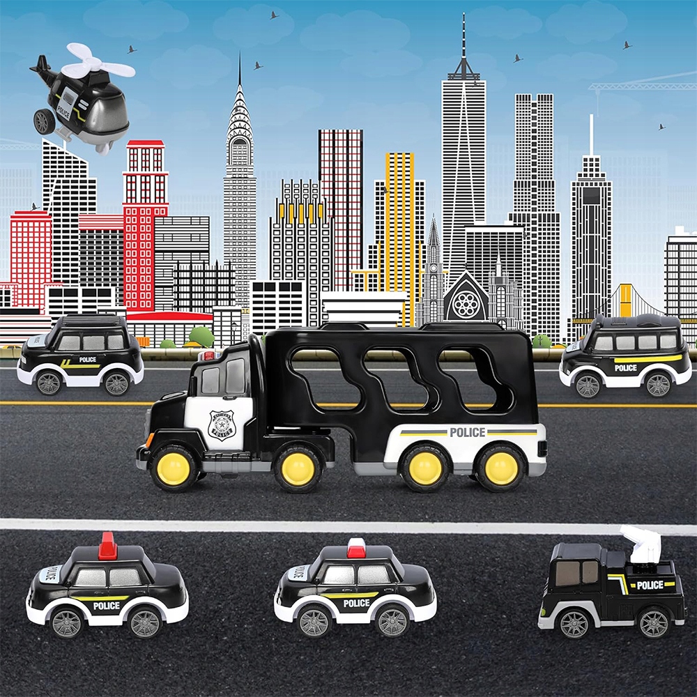 - Предназначен для небольших полицейских энтузиастов, он содержит больший транспортный грузовик, 5 небольших автомобилей и небольшой вертолет.