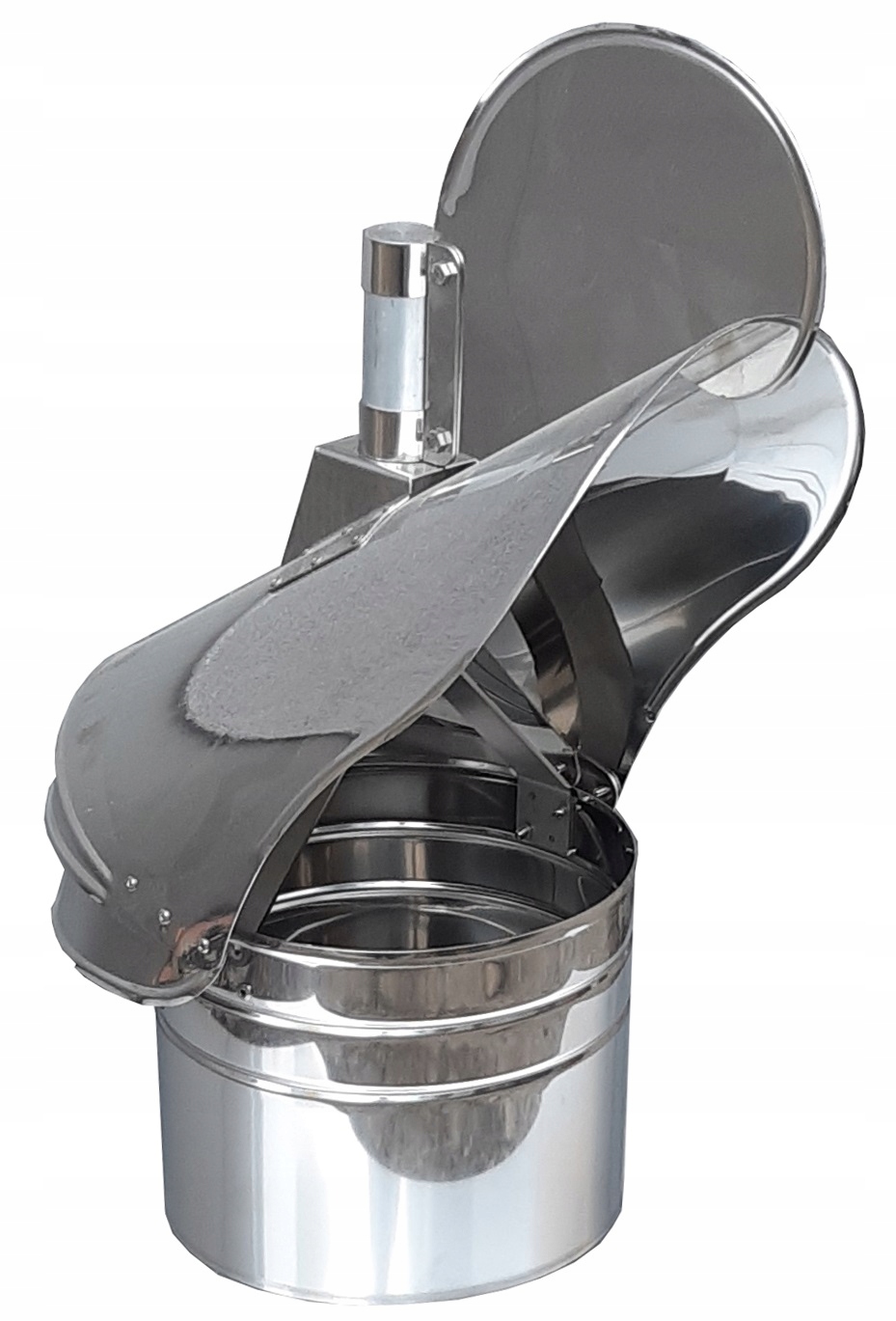 Устанавливается на выходах твердотопливных дымоходов, самотечной вентиляции, особенно в одноквартирных и многоквартирных домах. Новый продукт, работающий очень тихо и дополнительно защищающий от осадков.