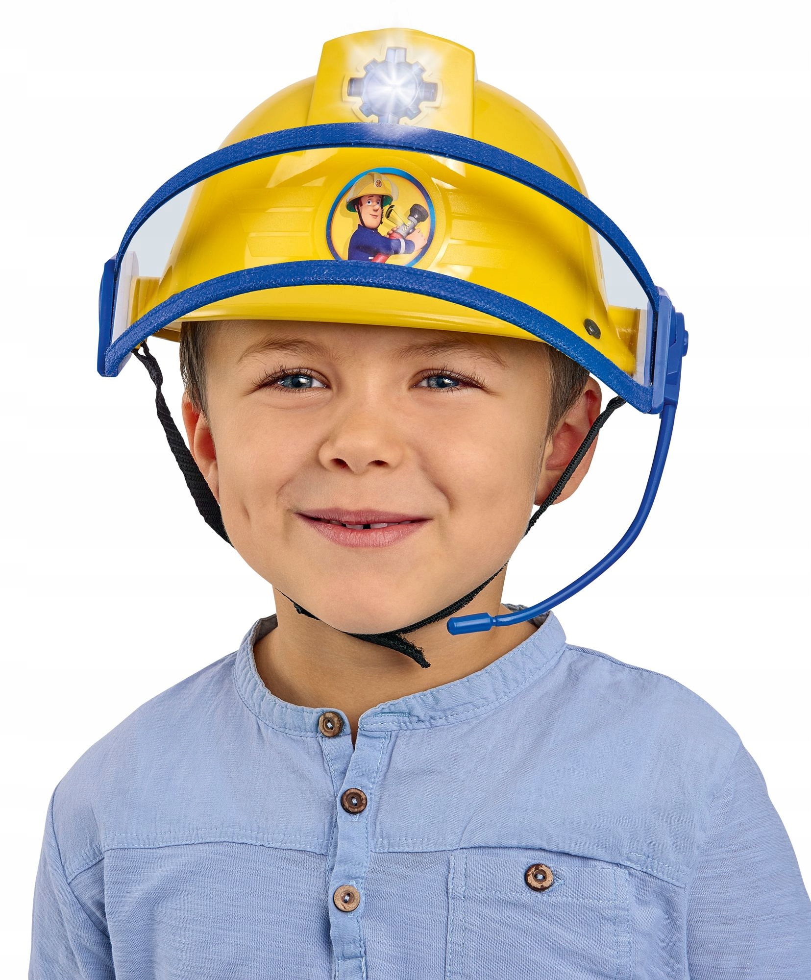 изготовлен известной и уважаемой компанией Simba. Вдохновением для создания этой игрушки послужил популярный детский мультсериал «Пожарный Сэм». Эта сказка рассказывает о приключениях отважного пожарного Сэма, который вместе со своими друзьями обеспечивает мир и безопасность вымышленного городка Понтипанди. Этот игрушечный шлем желтого цвета украшен темно-синим значком пожарного спереди (звуковые и световые эффекты) и наклейкой с портретом пожарного Сэма. Шлем имеет съемную прозрачную защиту для глаз и имитацию микрофона.