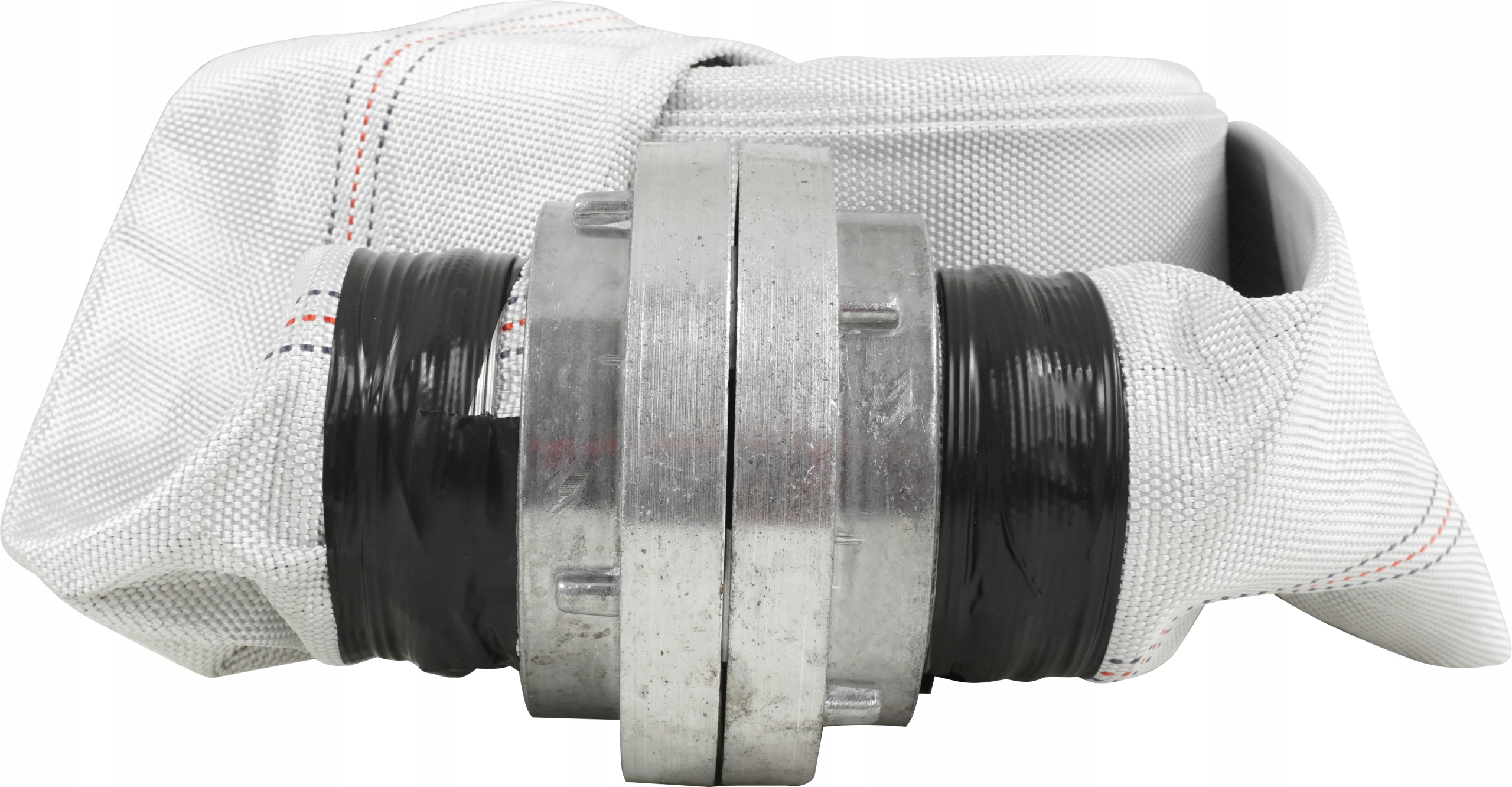 - Шланг изготовлен из белой полиэфирной ленты, соединенной с черной внутренней вставкой.