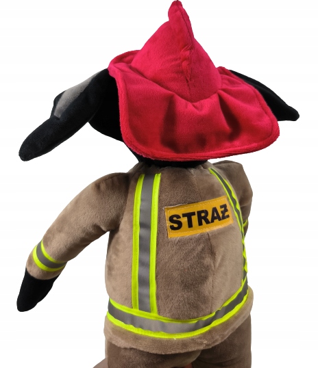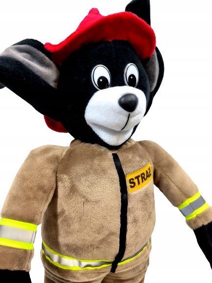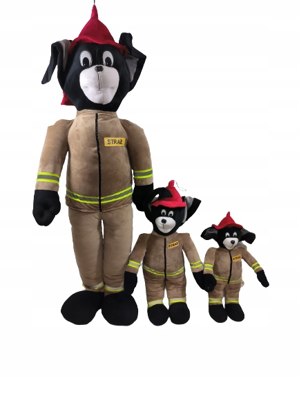 Высота кролика примерно 50см ( +/- 5) - допуск производителя 6см)из мягкого и приятного материала. Одежда кролика стилизована под специальную одежду пожарного песочного цвета. Спереди, на левой груди и на спине надпись «СТРАЖ». Кроме того, на одежде имеются строчки, имитирующие светоотражающие полосы специальной одежды.