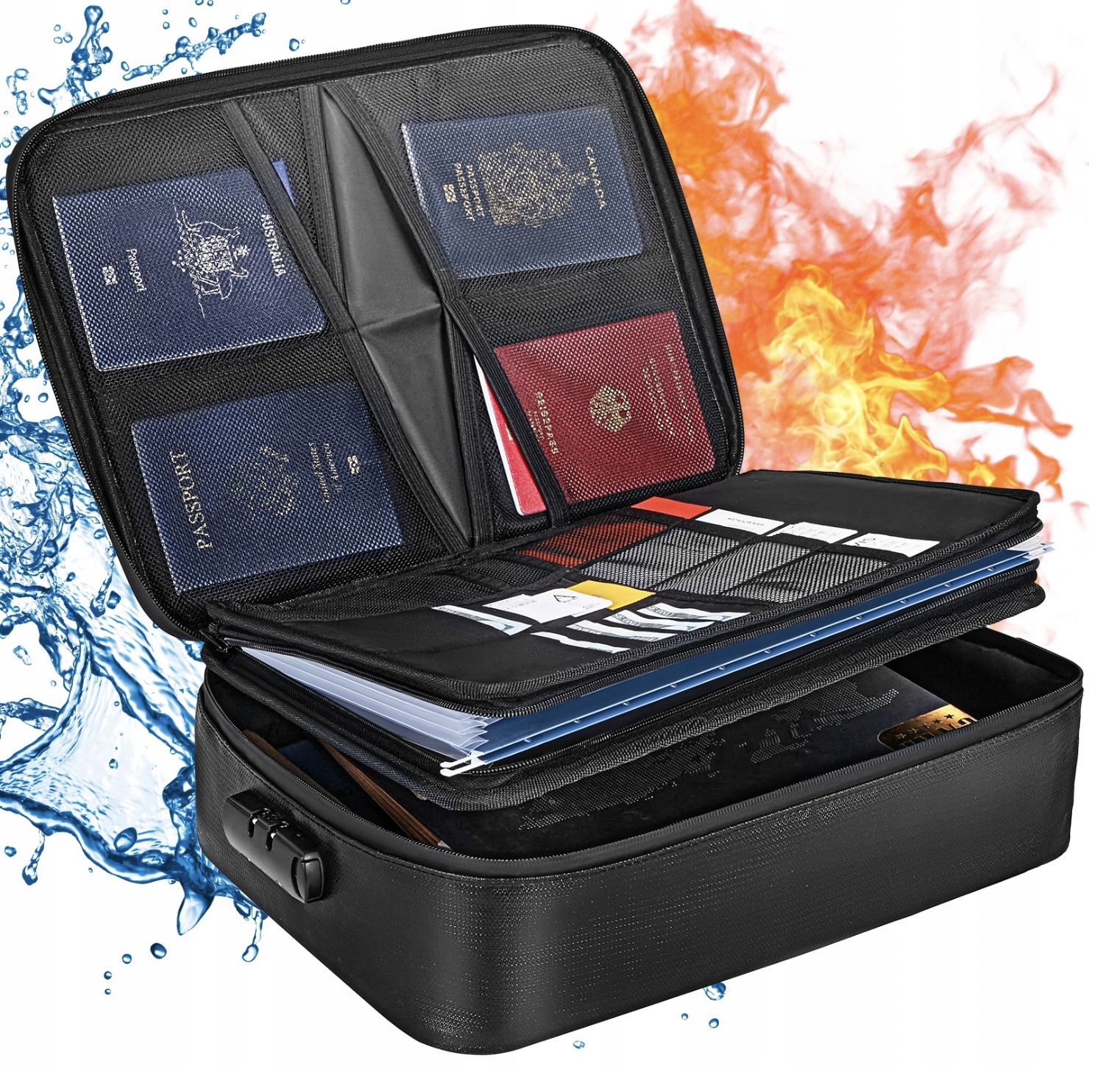 - Водостойкость для дополнительной защиты: сумка обеспечивает не только защиту от огня, но и от воды. его материалы устойчивы к влаге, что не позволяет воде войти в сумку, даже в случае затопления или в трудных погодных условиях. Это идеальный вариант для хранения документов в офисе, в путешествиях или в комнатах, подверженных воздействию влаги.