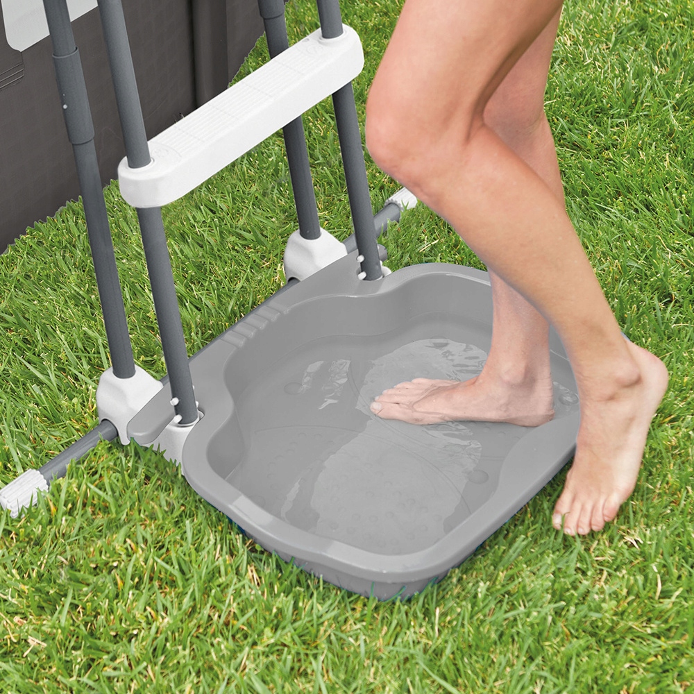 Практичный контейнер для мытья ног перед входом в бассейн! Специально разработанное нескользящее дно снижает риск поскользнуться.