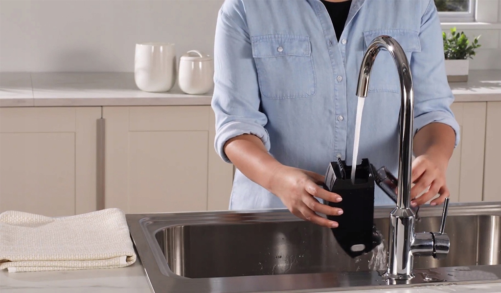 Конструкция контейнера позволяет мыть его под проточной водой. Для этого сначала необходимо удалить сам фильтр.