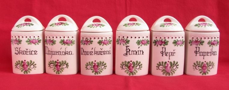 Pojemniki na przyprawy * zestaw 6 sztuk * kwiaty ręcznie malowane